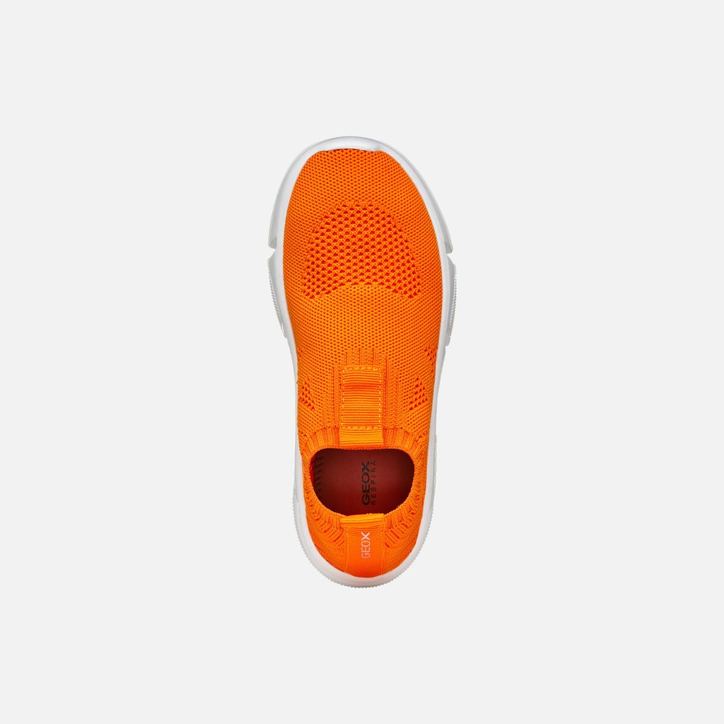 Chlapecké tenisky Geox Aril v zářivě oranžové barvě zaujmou moderním designem s bezešvou pleteninou a ponožkovým střihem. Bílá podrážka zajišťuje stabilitu a pohodlí při každém kroku.