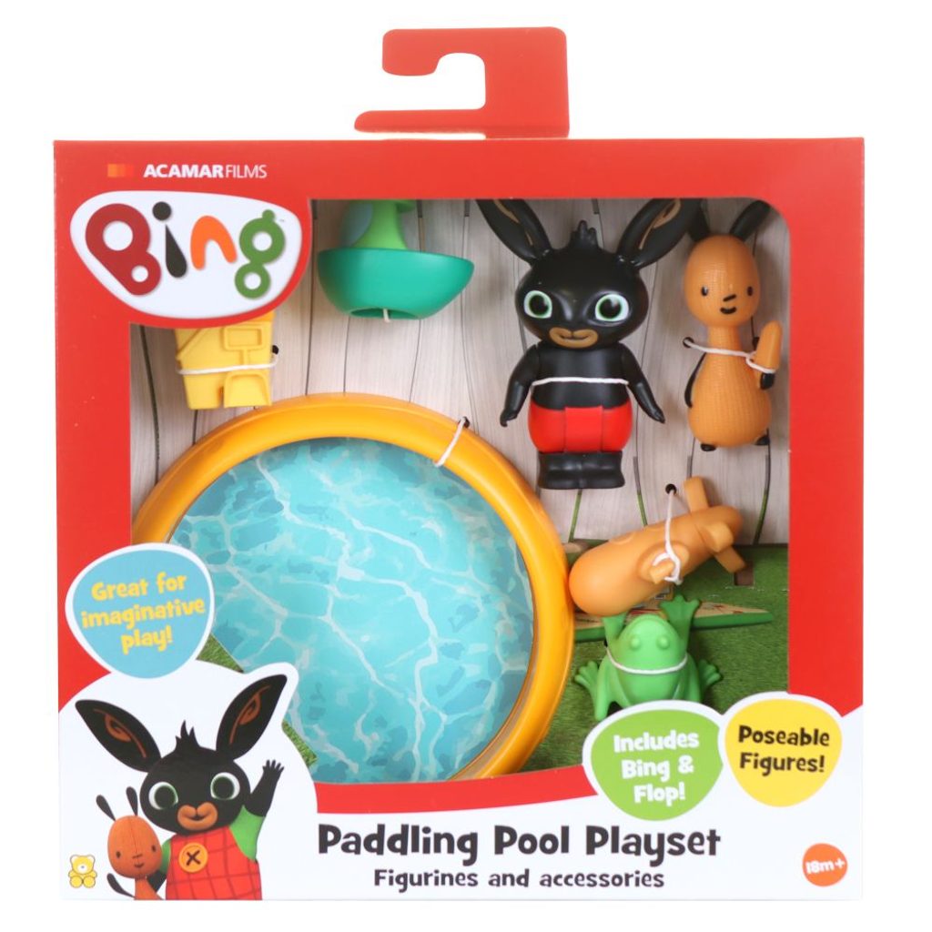 Malé děti nebudou milovat nic jiného, než tyto hrací sady.Hrací set s bazénken, obsahuje figurku Binga, Flopa a příslušenství jako je mini Bingoval lodička, žabka a další. Perfektní pro malé ručičky dětí. Vhodné pro děti od 18 měsíců.