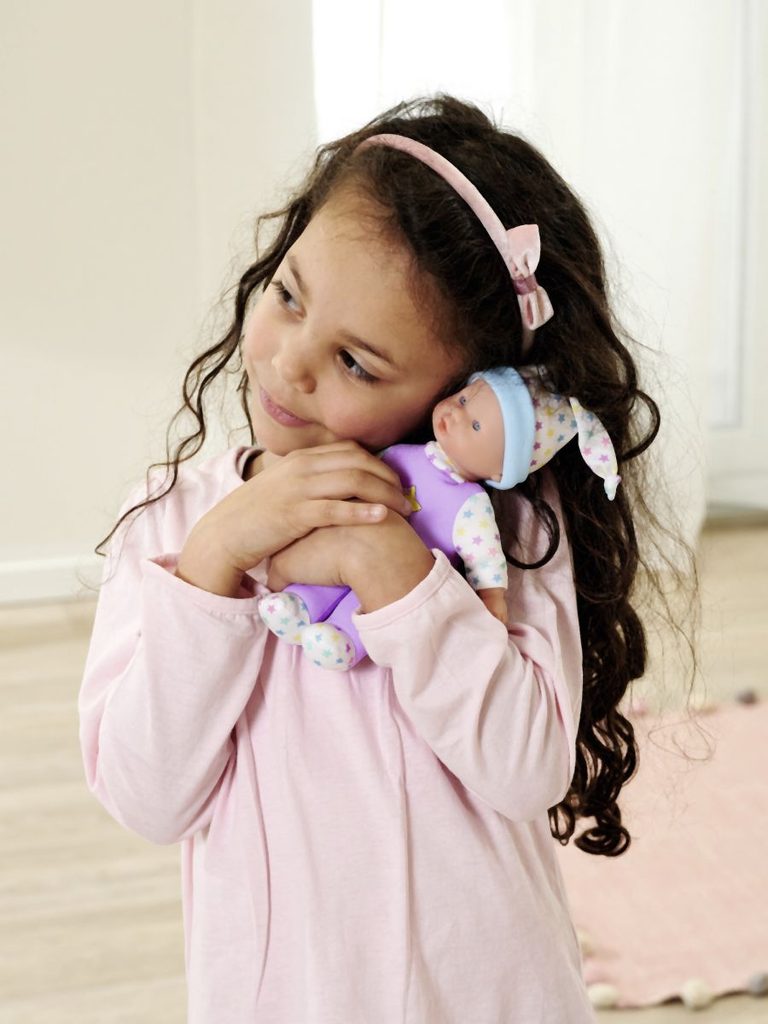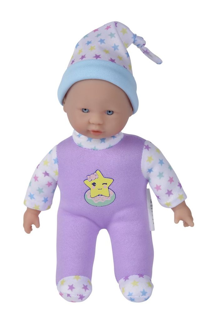 Panenka s měkkým tělíčkem a pěti zvuky, v roztomilém barevném designu s hvězdičkami, 3 druhy. Velikost 20 cm.