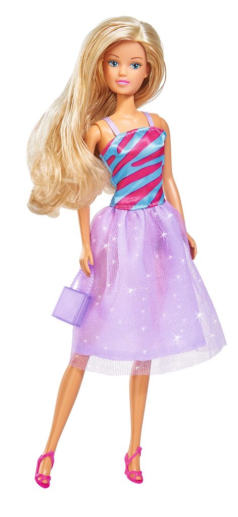 Panenka Steffi s osmi večerními luxusními oblečky a doplňky, 23 ks, velikost 29 cm.