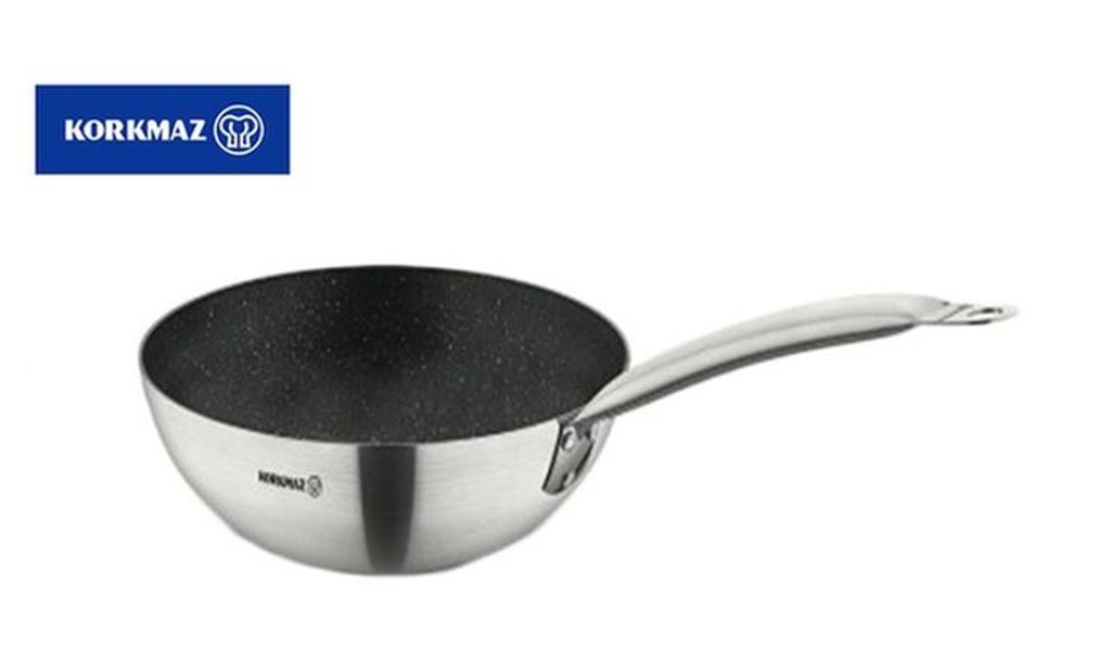 Ve srovnání s jinými pánvemi lze použít méně oleje, což umožňuje zdravější vaření. Vyrobeno ze snadno recyklovatelných materiálů. pánev d28cm WOK, GASTRO, nepř.povrch, v.8,3cm, NR