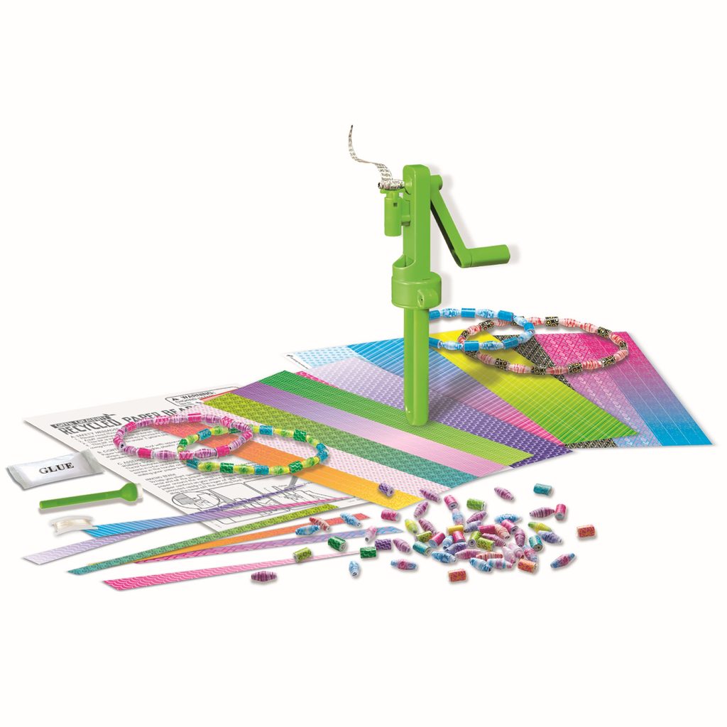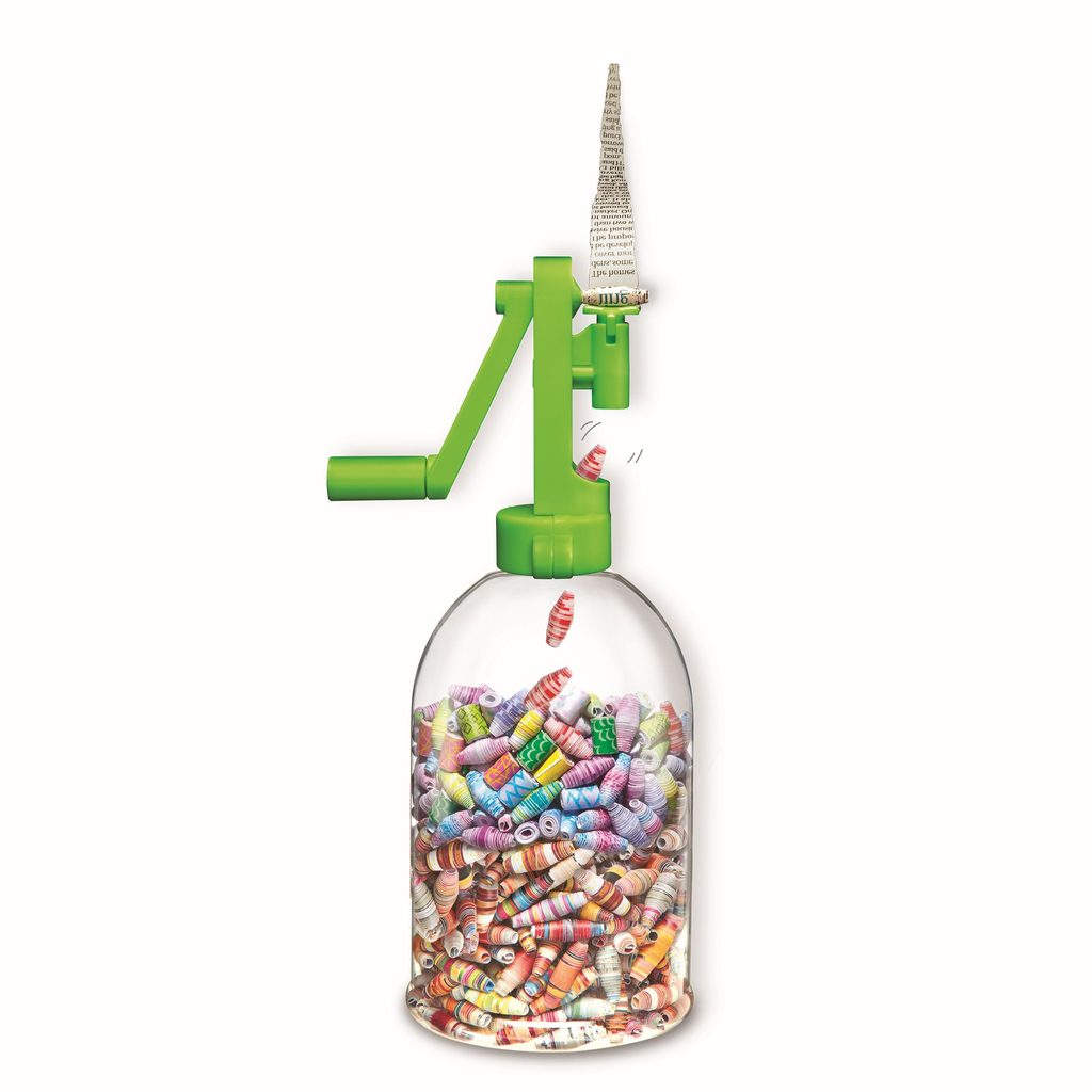 Bav se a vyráběj papírové korálky s naším speciálně navrženým nástrojem. Jednoduše vlož do nástroje papír z novin nebo časopisu a otoč kličkou.