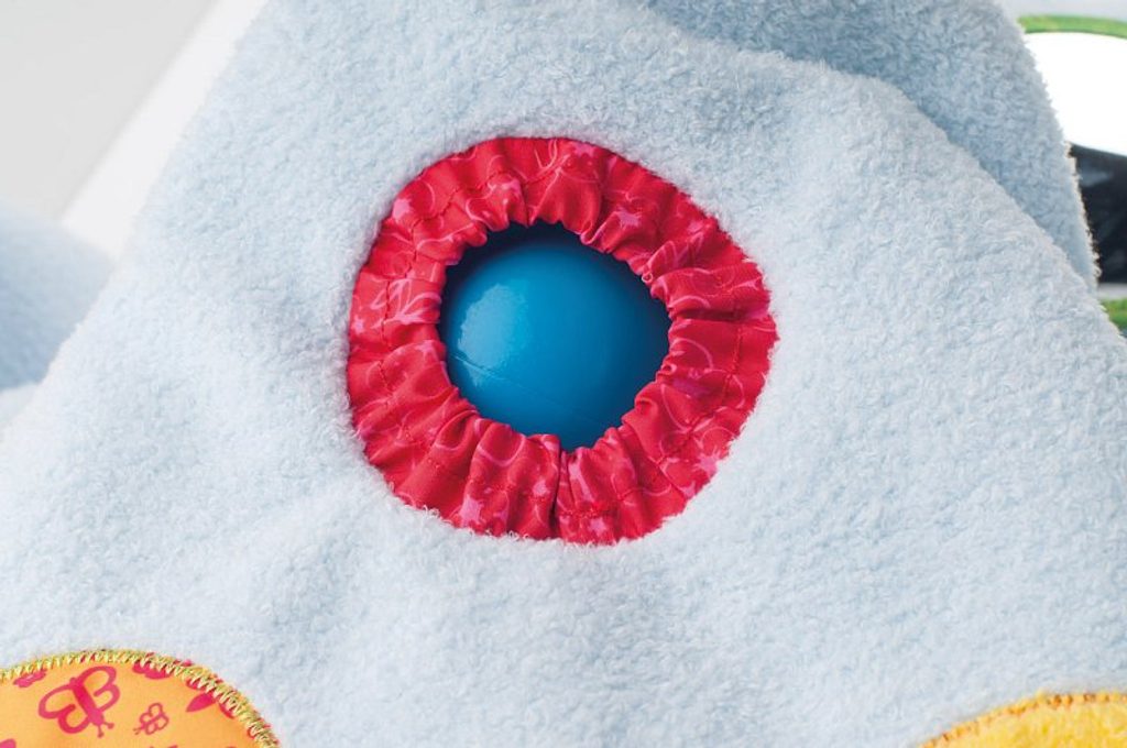 V jeho těle je uloženo 60 barevných plastových míčků. Ocásek je vyrobený z látkového míčku, který vydává zvonivý zvuk. Na těle pejska jsou hrací prvky, prostrkávací okénka, zrcátko. Ouška šustí. Všechny použité materiály jsou příjemné na dotek a nabízí dětem ničím nerušený čas relaxace. Design německé návrhářky Britty Hurter.