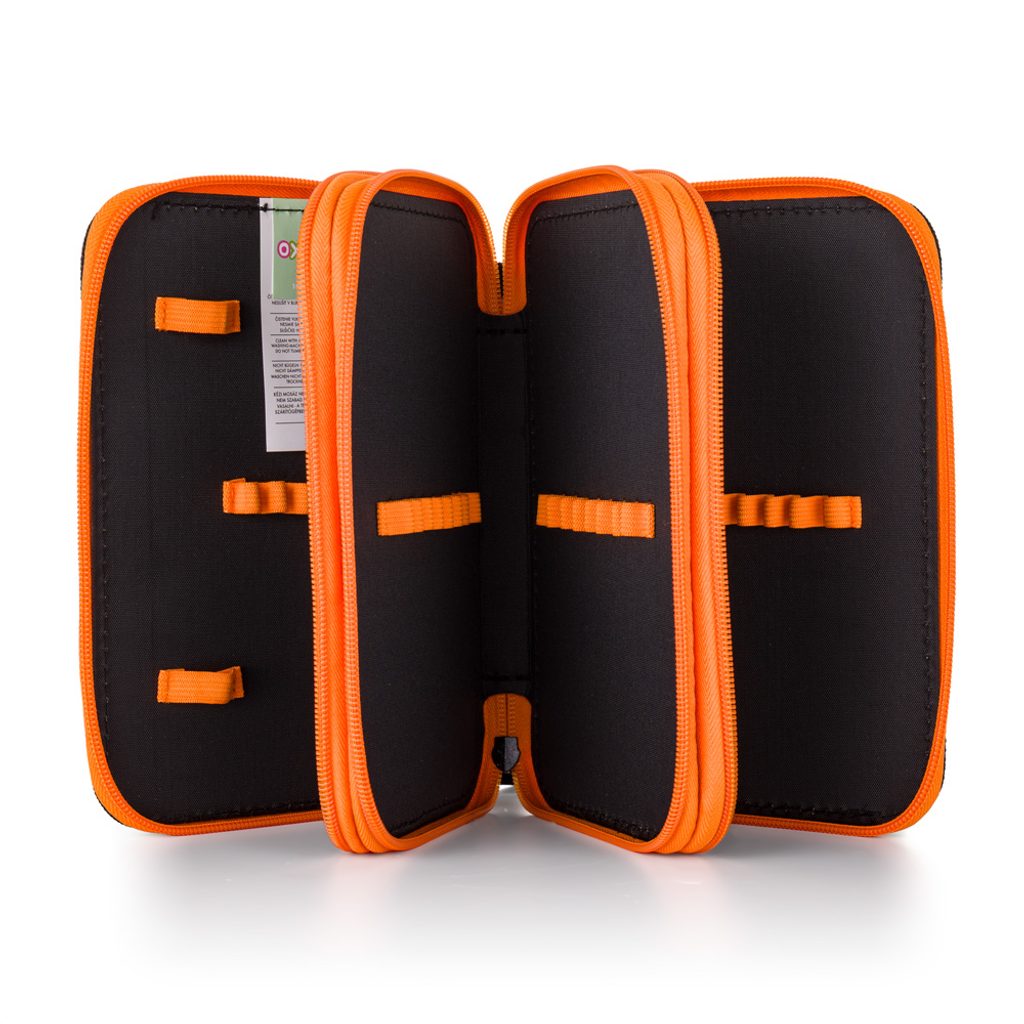 Školní penál třípatrový bez náplně. Penál obsahuje 41 gumových poutek pro uložení všech psacích potřeba a drobností potřebných k výuce. Penál má pevný zip s velkými taháčky pro snadnou manipulaci. Jedno patro je opatřeno průhlednou přihrádkou pro týdenní rozvrh.