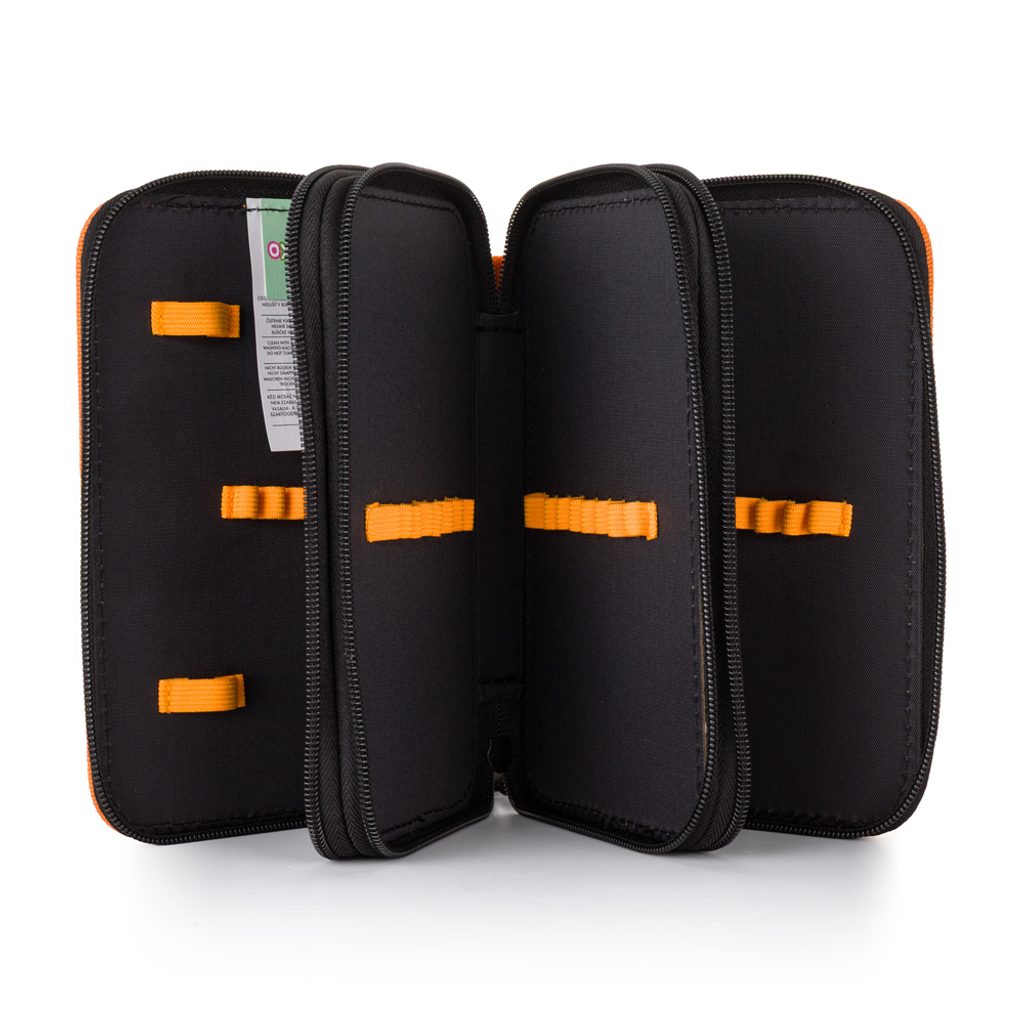 Školní penál třípatrový bez náplně. Penál obsahuje 41 gumových poutek pro uložení všech psacích potřeba a drobností potřebných k výuce. Penál má pevný zip s velkými taháčky pro snadnou manipulaci. Jedno patro je opatřeno průhlednou přihrádkou pro týdenní rozvrh.