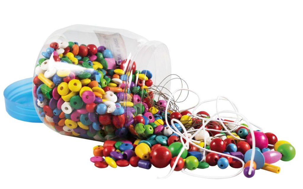 Kreativní sada v podobě dřevěných perliček a navlékacích nití je zábava, při které si vaše děti procvičí šikovnost prstíků.