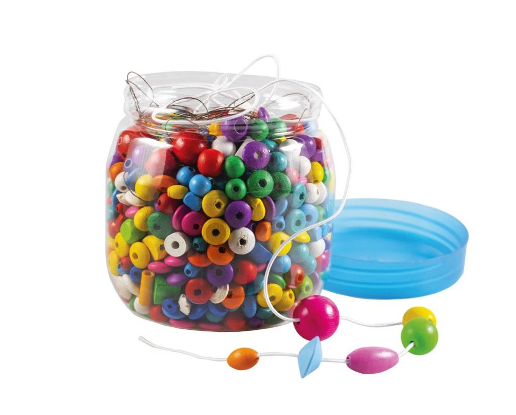 Výrobek splňuje požadavky EU na bezpečnost hraček a je vhodný pro děti od 3 let. Kreativní sada v podobě dřevěných perliček a navlékacích nití je zábava, při které si vaše děti procvičí šikovnost prstíků.