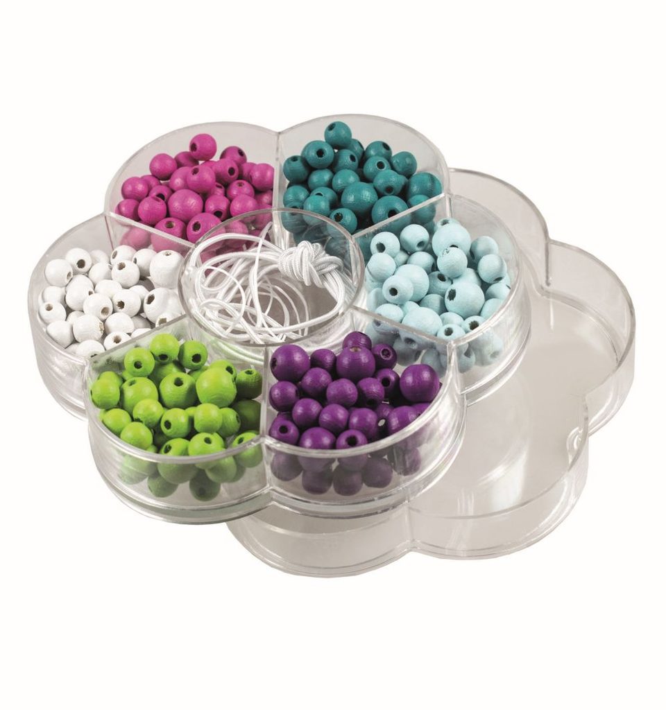 Kreativní sada v podobě dřevěných perliček a navlékacích nití je zábava, při které si vaše děti procvičí šikovnost prstíků.