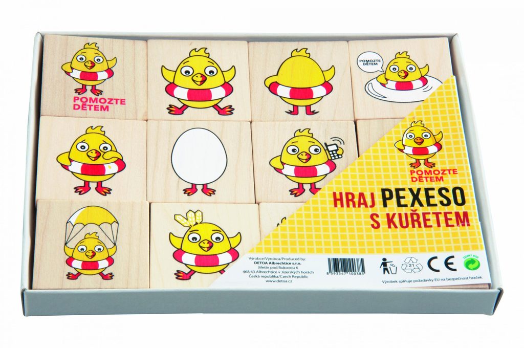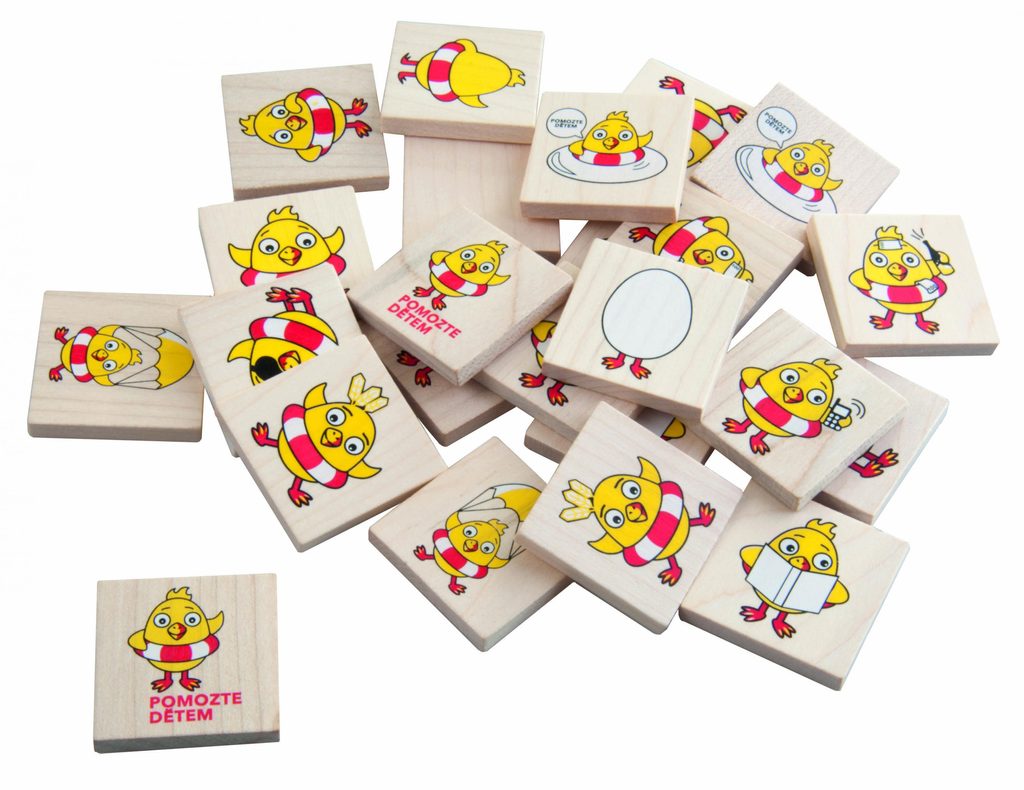 Dřevěná hra s motivem nadace "Kuře" pro trénink paměti a postřehu. Obsahuje 24 kamenů.