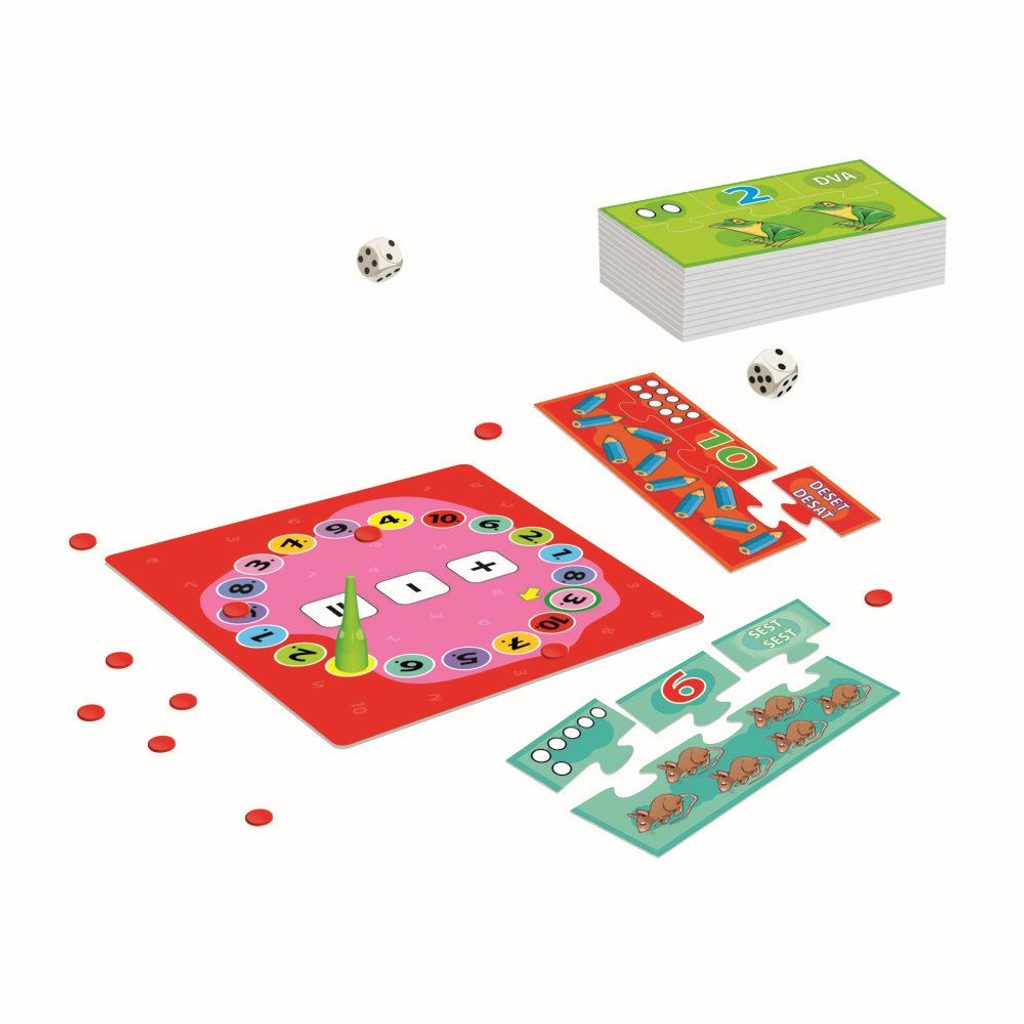 Hra obsahuje 10 sad dílků se znaky a obrázky, které se skládají ze čtyř obrázků, které mají vzájemný vztah a různým způsobem vyjadřují (ilustrují) celou řadu čísel od 1 do 10.