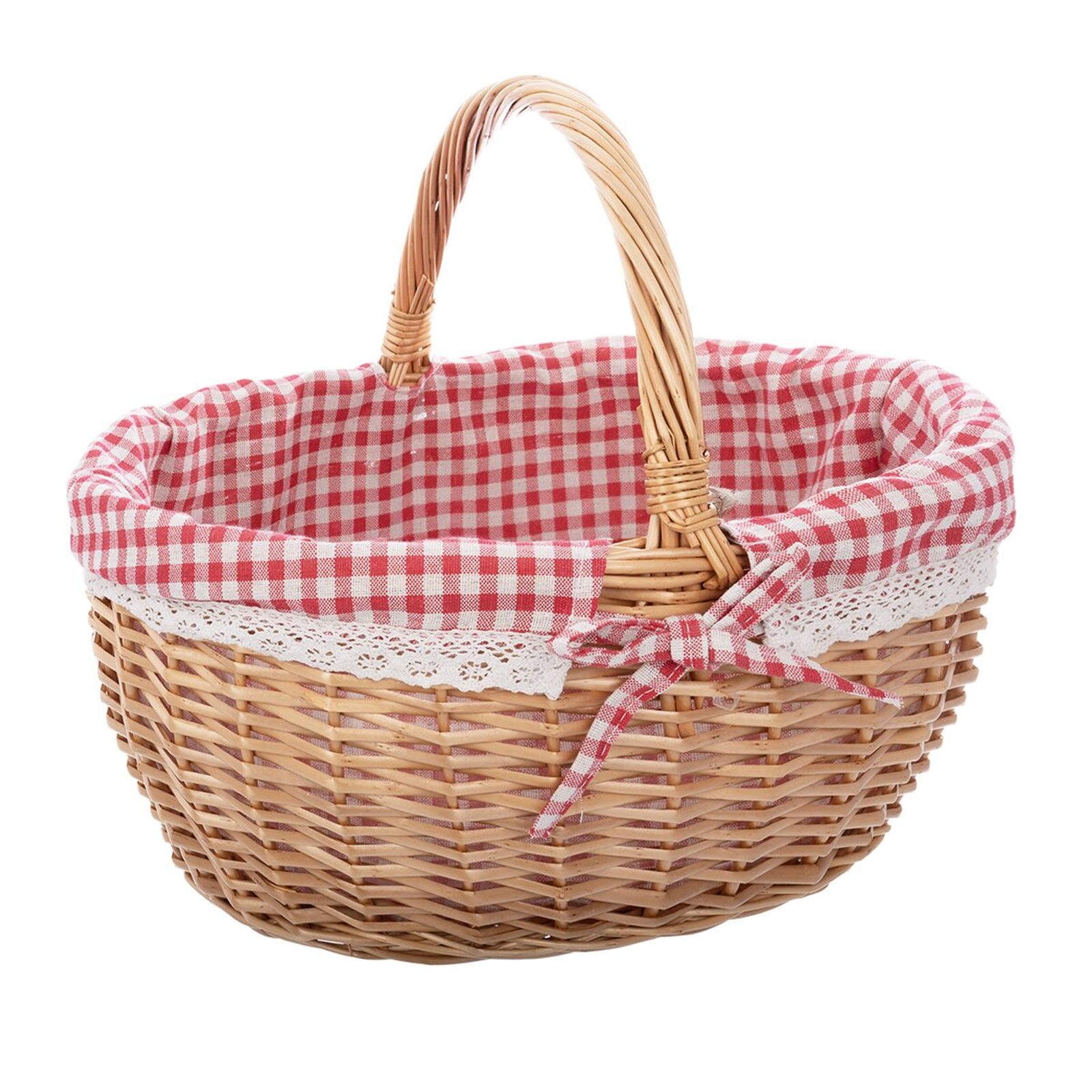 Proutěný koš na piknik z kolekce KÁRO je ideálním doplňkem pro pohodové chvíle strávené v přírodě. Je vyroben s důrazem na tradiční řemeslné zpracování, a proto se může každý kus mírně lišit v rozměrech – jedná se o ruční práci. Koš je vybaven praktickým uchem, které zajišťuje snadné a pohodlné přenášení. Pro udržení dlouhé životnosti a zachování vzhledu vnitřní látkové výstelky se doporučuje praní na 40 °C, nesušit v sušičce a nepoužívat bělidla. Tento elegantní a funkční proutěný koš je skvělou volbou pro pikniky, výlety i stylové stolování na zahradě. Materiál: vrbové proutí, 40 % bavlna, 60 % polyester. Rozměry: 43x36x35 cm, v. 20 cm (bez ucha).