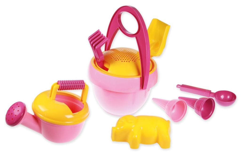Set na písek obsahuje kyblík o průměru 17 cm, sítko, hrabičky, lopatku, dvě bábovičky, dva zmrzlinové kornoutky, konvičku a zmrzlinovou naběračku. Celkem 10 dílů. Pro dívky od 2 let. Set na písek obsahuje kyblík o průměru 17 cm, sítko, hrabičky, lopatku, dvě bábovičky, dva zmrzlinové kornoutky, konvičku a zmrzlinovou naběračku. Celkem 10 dílů. Pro dívky od 2 let.