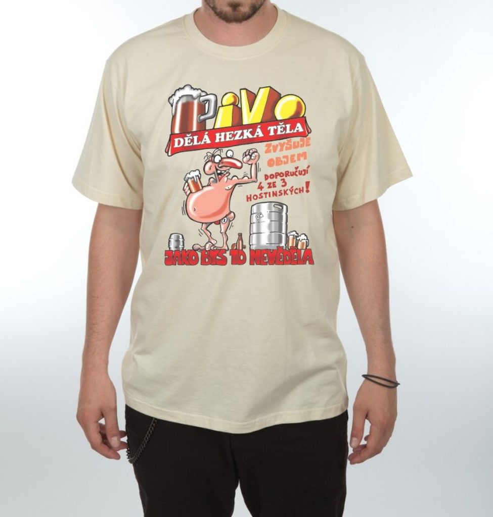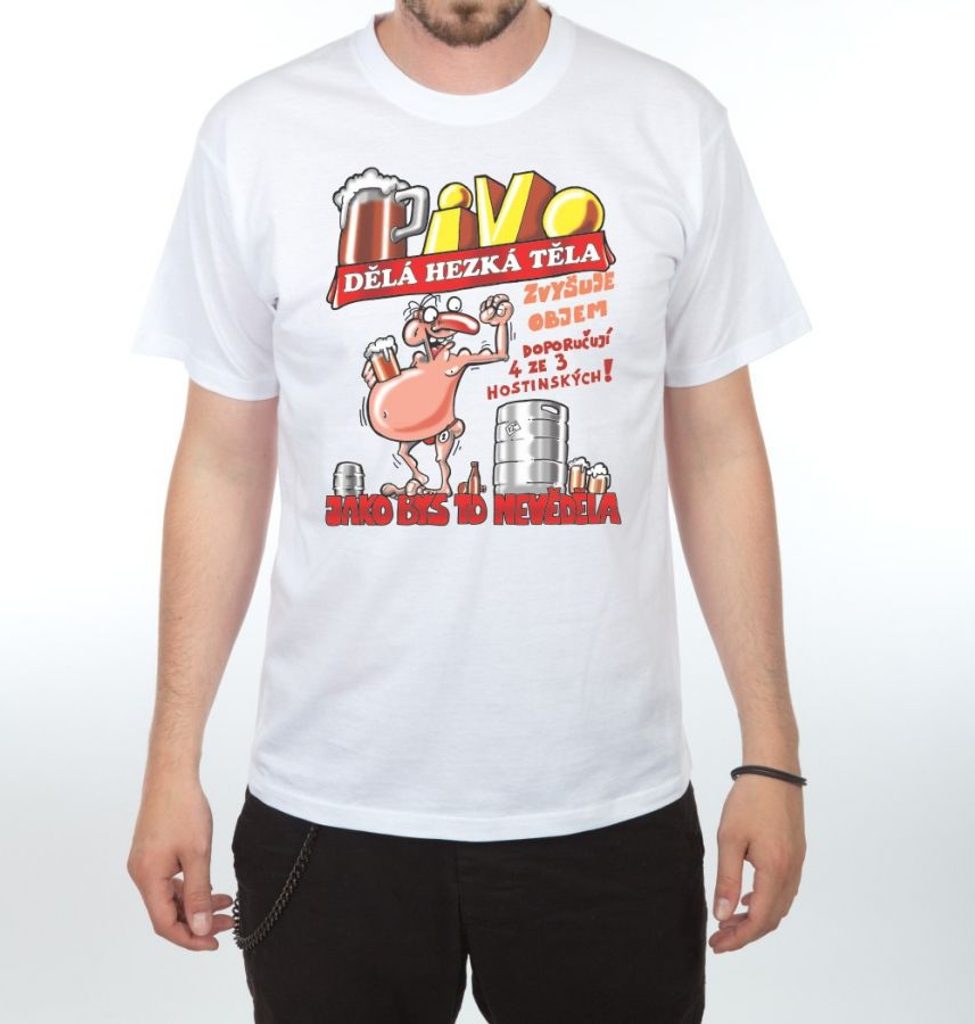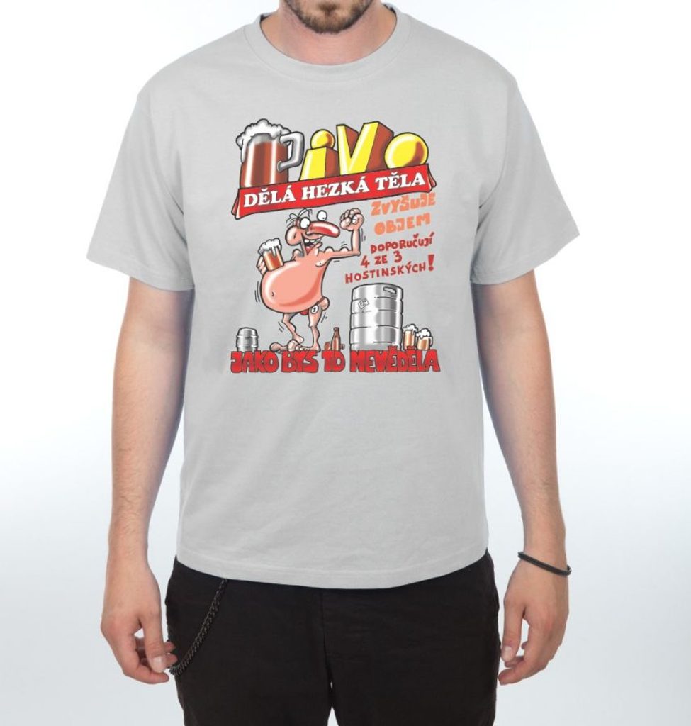 Žertovné tričko pro všech milovníky piva. Praktický a zároveň zábavný dárek nejen k narozeninám, ale i k svátku, na Vánoce nebo jen tak. Tričko ve více barevných variantách s nápisem "Pivo dělá hezký těla.....". Protože trička nesoucích moudrost o pivu není nikdy dost.
