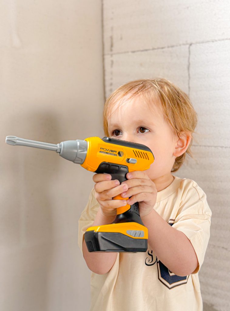 Aku vrtačka, která vydává zvuk vrtání a svítí. Vrtačka rozvíjí dětem motoriku a učí děti manuální práci.