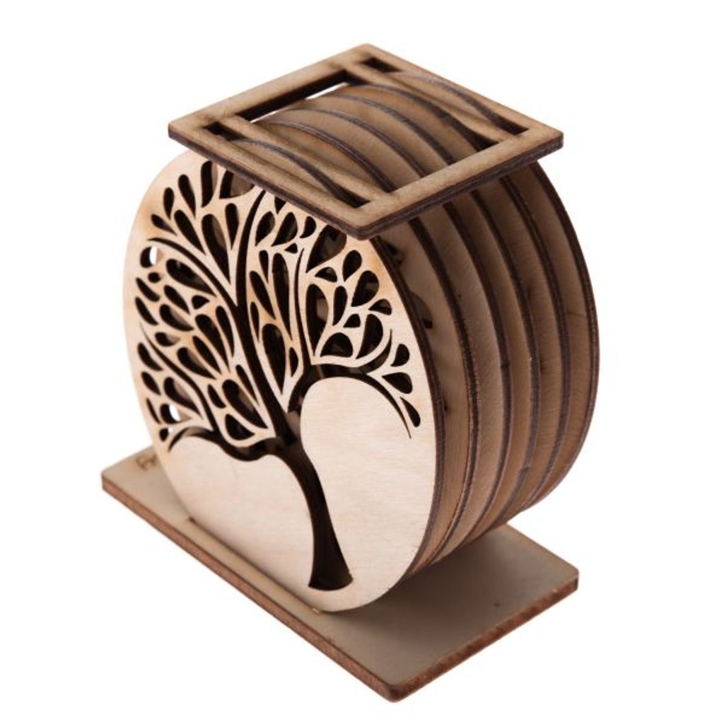 - podtácek d cm, 6ks, stojan, dekor STROM, dřevo