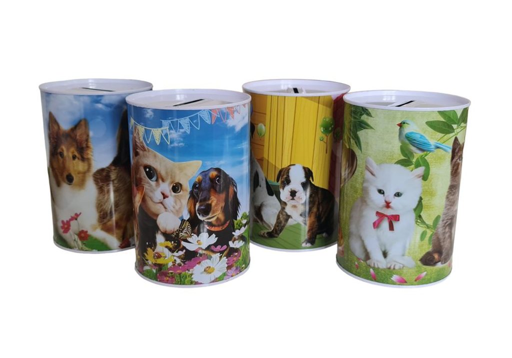 - pokladnička PEJSCI, KOČIČKY, MIX, d10x14cm, plech