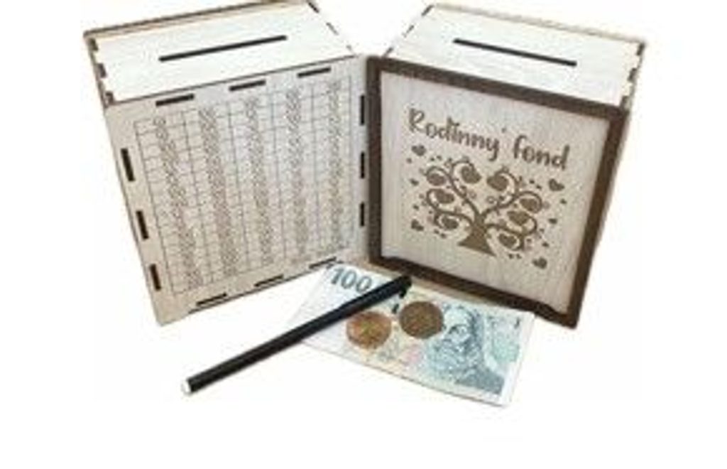 - pokladnička RODINNÝ FOND, zaškrt.pole, dřevo