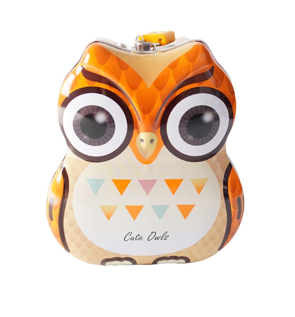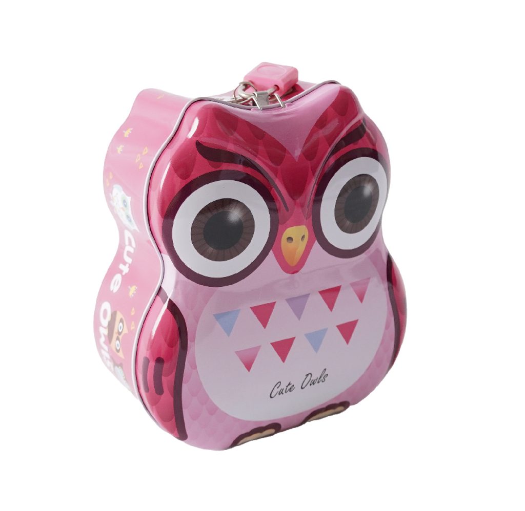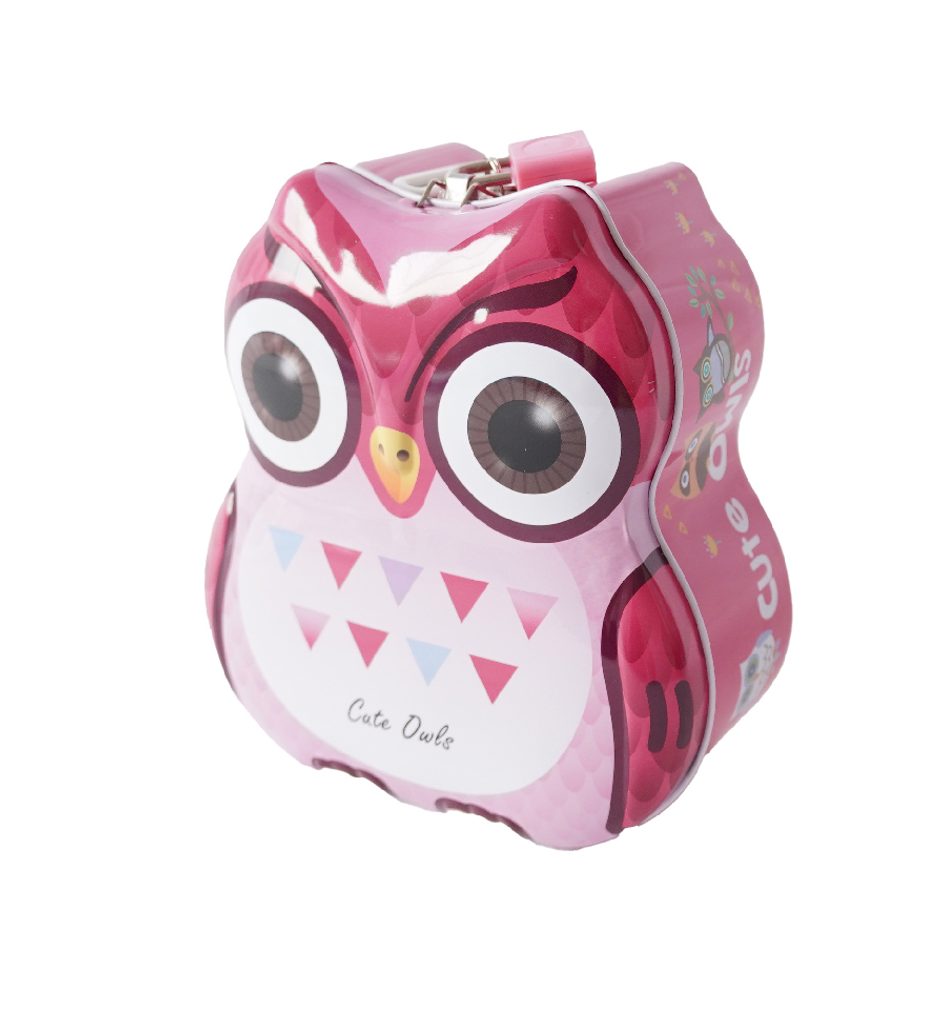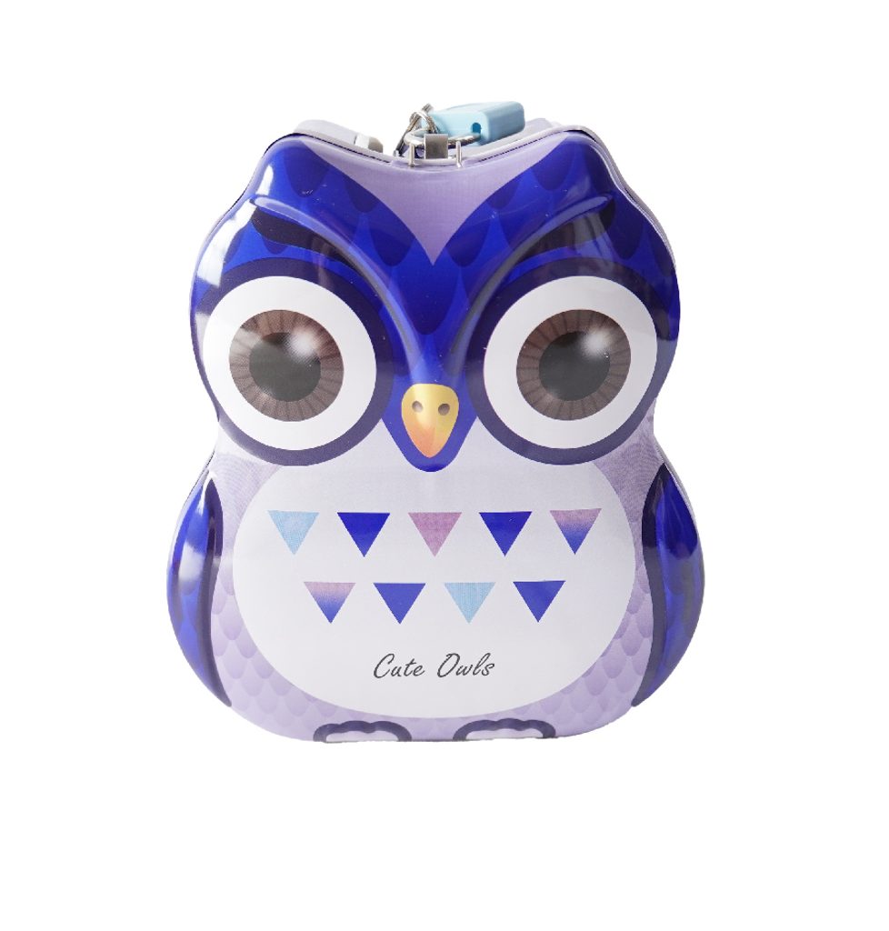Malá kovová pokladnička se zámkem ve tvaru sovy. Děti učí si střádat své úspory. Malá kovová pokladnička se zámkem ve tvaru sovy. Děti učí si střádat své úspory.