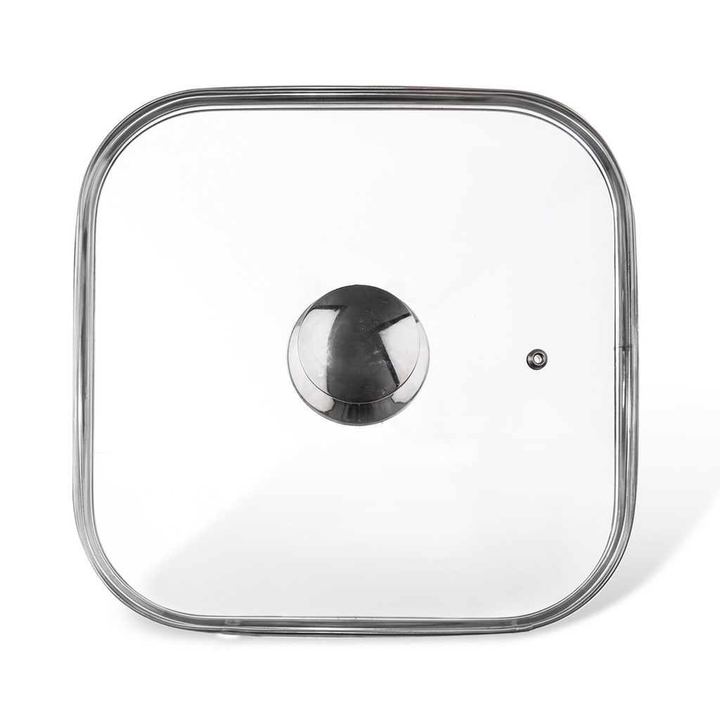 Skleněná hranatá poklice s nerezovým úchytem a otvorem pro únik přebytečné páry. Využijete ji na grilovací pánev GRANDE 112969. Šetří energii při vaření, zkrátí dobu přípravy pokrmů. Materiál: sklo, nerez. Lze použít do teploty 160 °C. Lze mýt v myčce na nádobí. Rozměry: 27x27 cm. Náhradní úchyt z naší nabídky 180641.