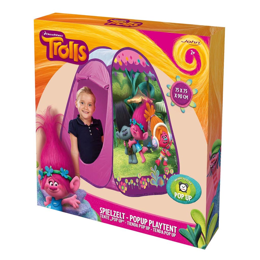 Stan pro venkovní i vnitřní použití s motivem Trollové. Stan lze jednoduše postavit i složit díky pružným tyčkám. Je vyroben z lehkého omyvatelného materiálu. Stan má velikost 75x75x90cm. Je složen v krabici. Doporučený věk 3+