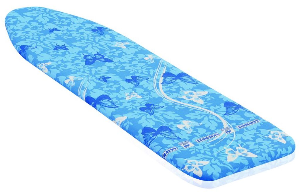 potah s titanovým povlakem, který odráží páru a teplo a tím zajišťuje o 33% rychlejší žehlení, 4 mm molitanové polstrování, vhodné pro žehlicí prkna Air Board, stahování šňůrkou s klipsem, průžný potah pro snadnější aplikaci na žehlicí desku, rozměry až 125 x 40 cm