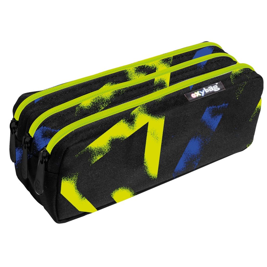 Praktické pouzdro pro školáky na druhém stupni se třemi kapsami na zip. Černo-barevný design a praktické uspořádání poskytují dostatek místa na psací potřeby a další nezbytnosti. Parťák na každý školní den.