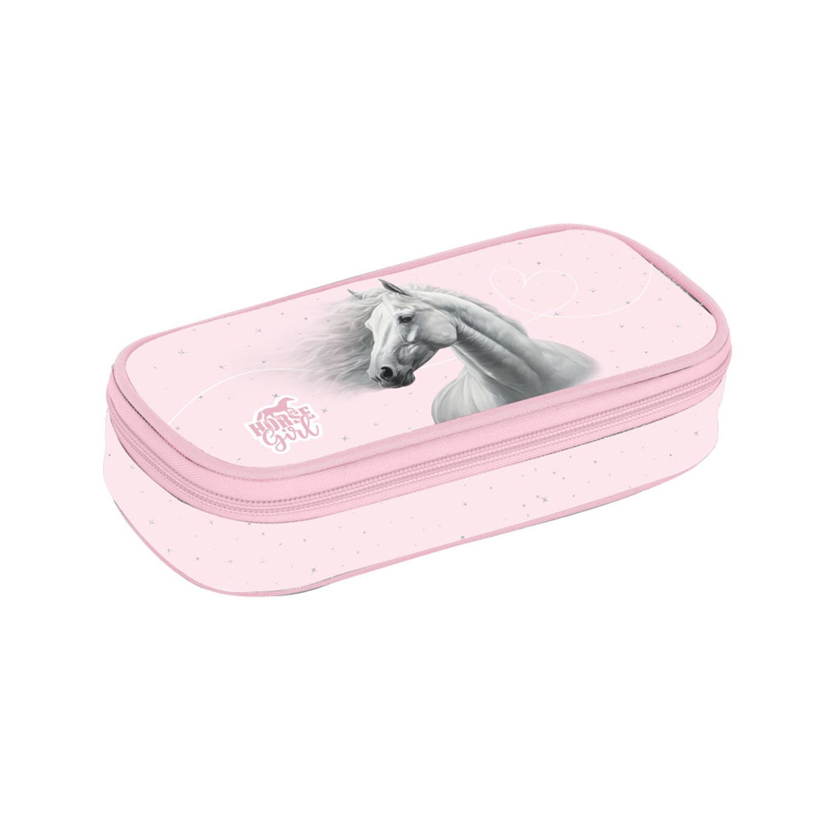 Školní pouzdro etue je opatřeno pevnými zipy, kapsičkou na zip a klopou s pevnými poutky po obou stranách. Pod klopou je místo pro volné uložení psacích potřeb nebo jiných drobností. Rozměr: 205*100*55 mm, Hmotnost: 140 g