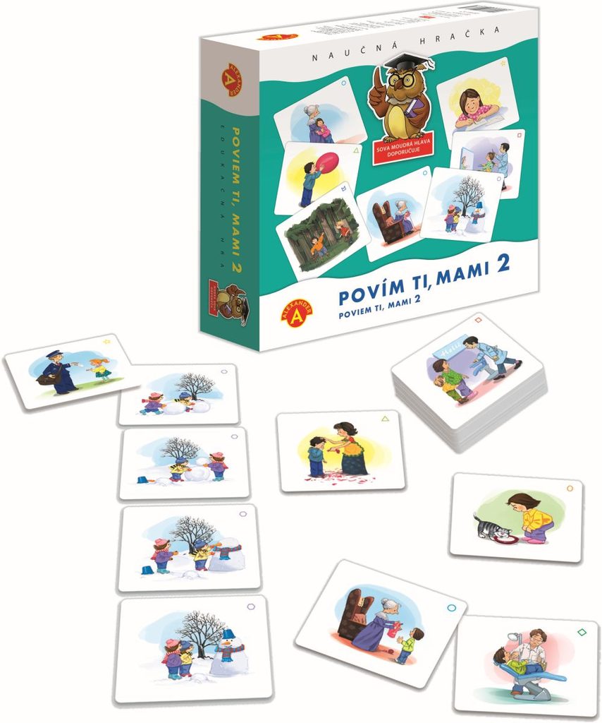 Pokračování úspešné hry Povím,Ti mami. Obsahuje 40 obrázků na destičkách, ze kterých je třeba sestavit 10 logických příběhů.