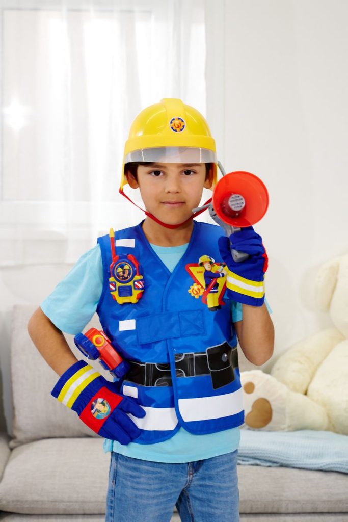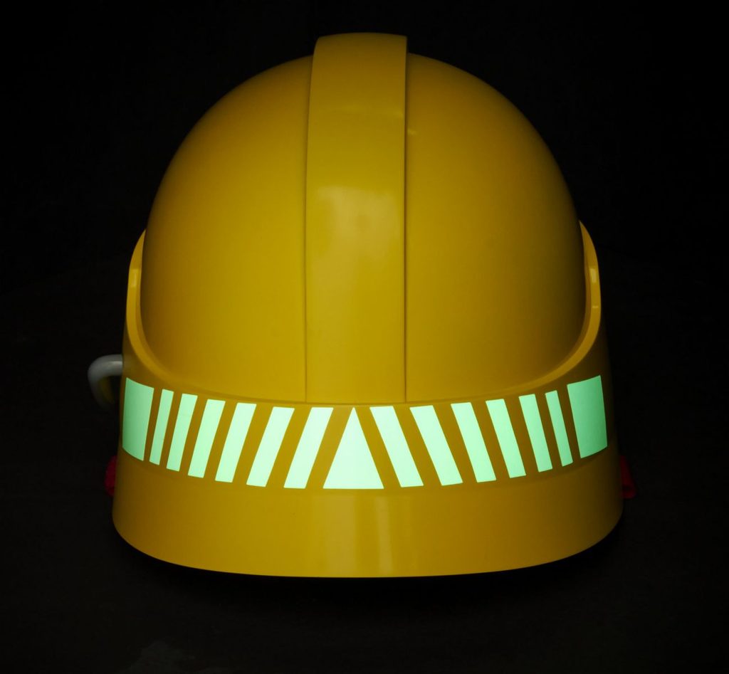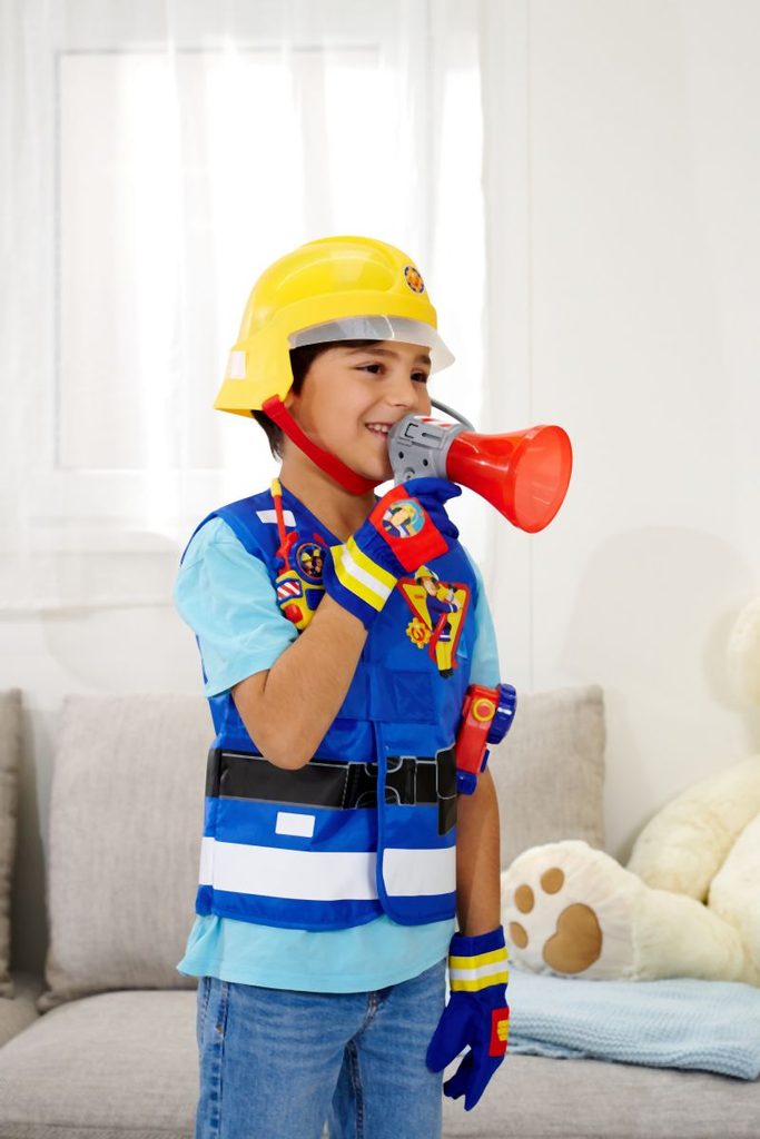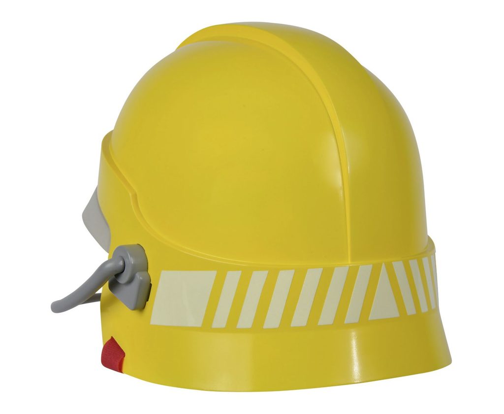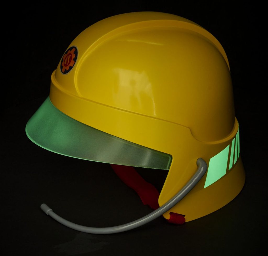 Hasičská helma pro malé hasiče v licenci Požárníka Sama s mikrofonem.Helma je v zadní části polepená ve tmě svítícími samolepkami, uvnitř jsou pěnové podložky.