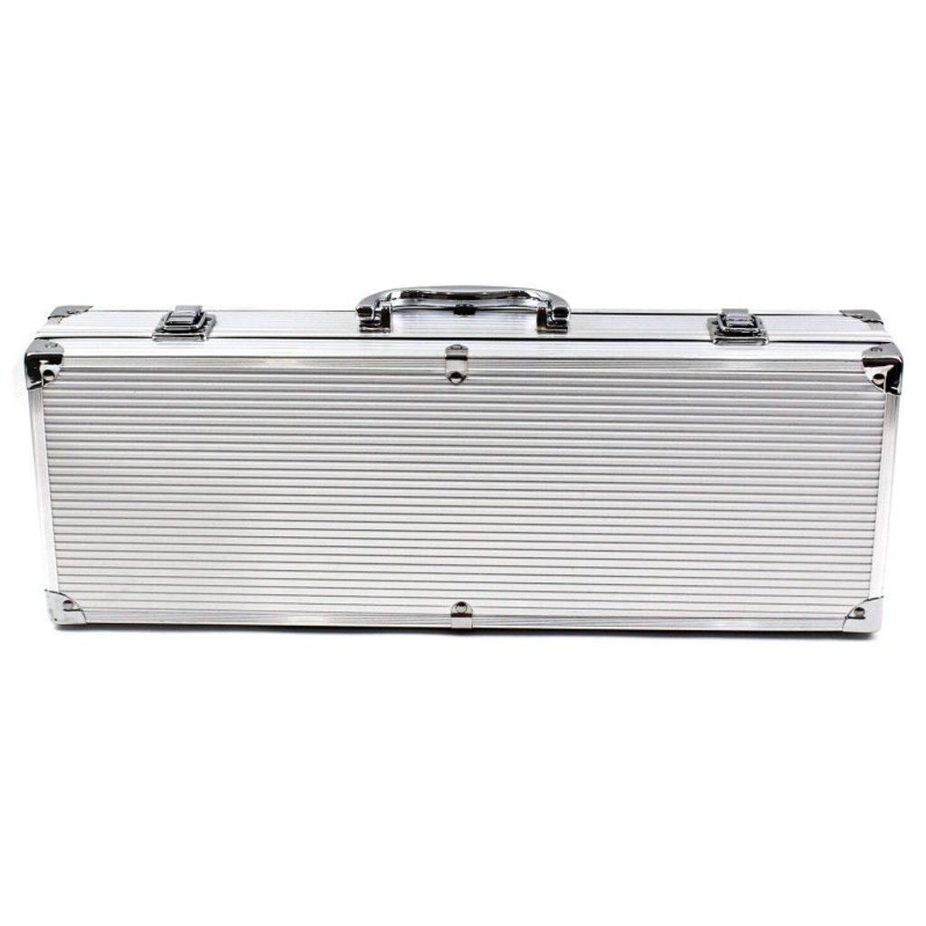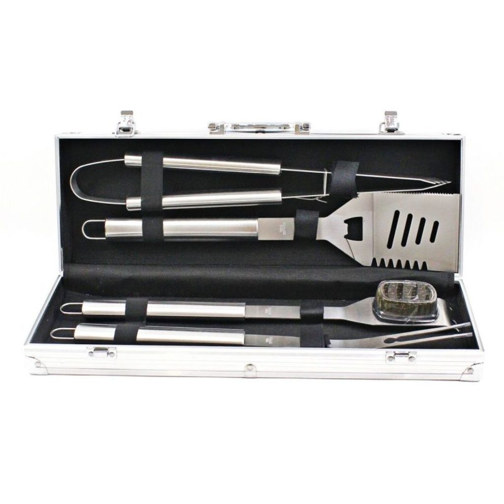 PROGARDEN Grilovací nářadí v kufříku sada 4 ks KO-C83500570 Pokud rádi grilujete, jistě potřebujete solidní nářadí ke grilu. Sada PROGARDEN obsahuje celkem 4 kusy náčiní z nerezové oceli. Všechny kousky jsou robustní s dlouhou rukojetí, takže se Vám bude náčiní dobře ovládat a nespálíte se. Grilovací obracečka je přizpůsobena k porcování masa a má v sobě zabudovaný otvírák na lahve. Celý set je uložen ve stříbrném přenosném kufříku. Díky pěknému balení v kufříku je sada velmi vhodným dárkem pro nadšence do grilování. Buďte připraveni, až začne grilovací sezóna. Sadu lze doplnit ještě o další příslušenství ke grilu od značky PROGarden. - materiál: nerezová ocel- robustní náčiní s dlouhou rukojetí- očko na zavěšení- kufřík s rukojetí se zavíráním na dva klipsy- sada obsahuje:- 1x kartáč / škrabku na čištění grilu 43 cm- 1x grilovací kleště 43 cm- 1x grilovací obracečku s otvírákem na lahve 43 cm- 1x porcovací vidličku 43 cm- 1x skladovací uzaviratelný kufřík s rukojetí 46 x 16 x 8 cm- značka: PROGarden