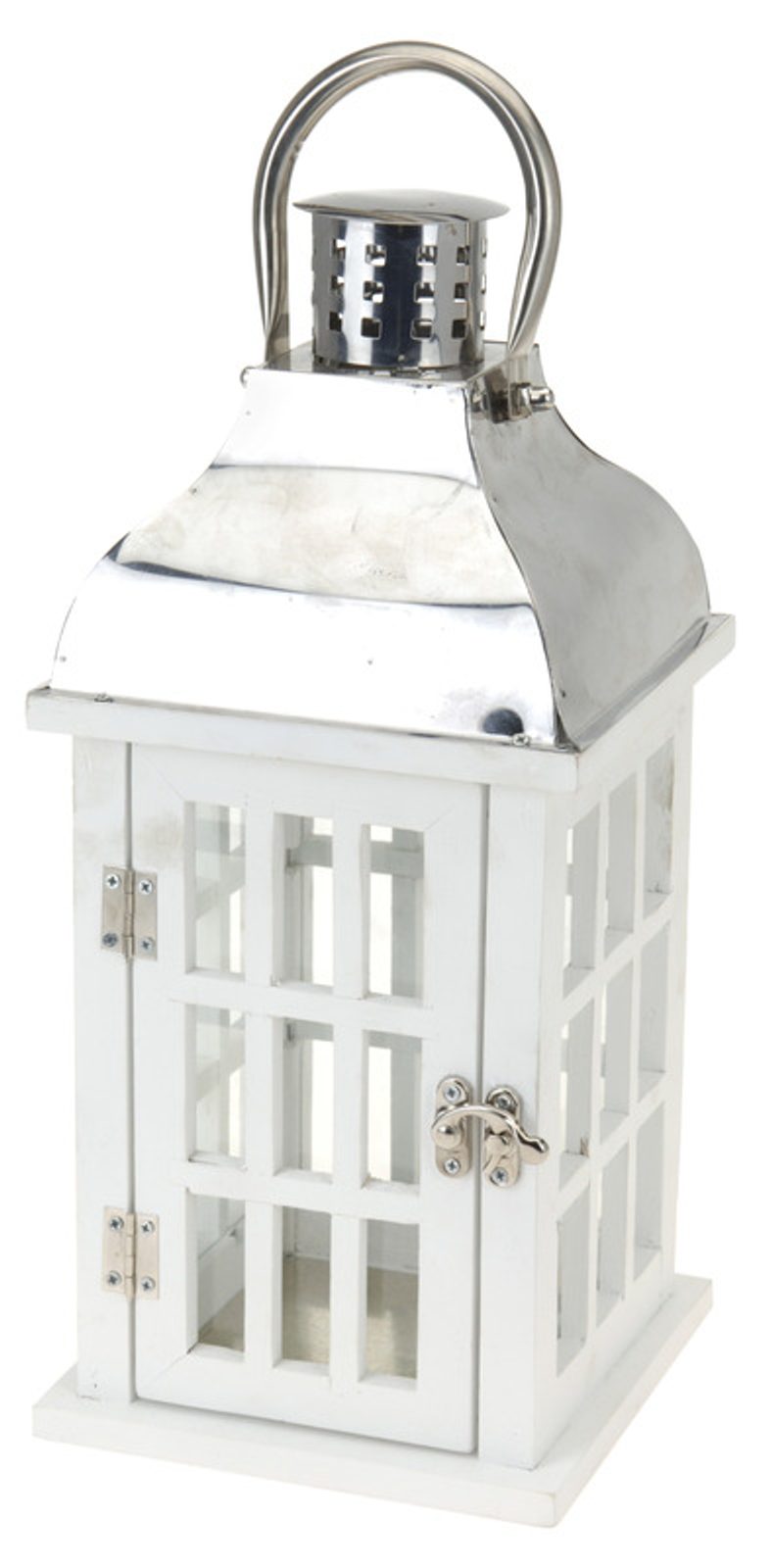 PROGARDEN Lucerna dřevěná 39 cm bílá/nerez KO-HZ1200010