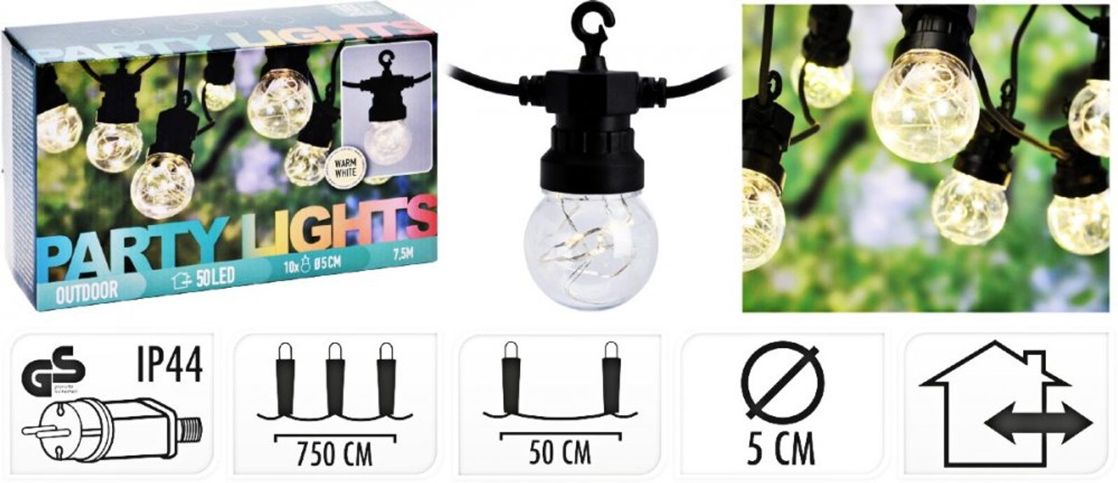 PROGARDEN Světelný řetěz LED PARTY 10 žárovek 50LED KO-AXC100000