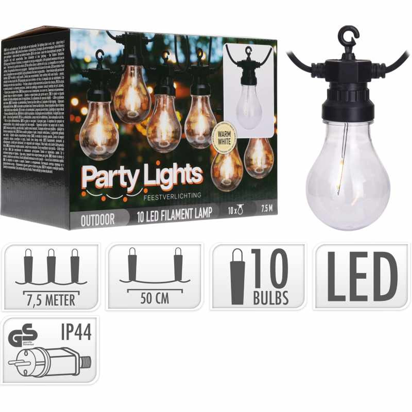 PROGARDEN Světelný řetěz LED PARTY 10 žárovek 7,5m KO-LE2100170