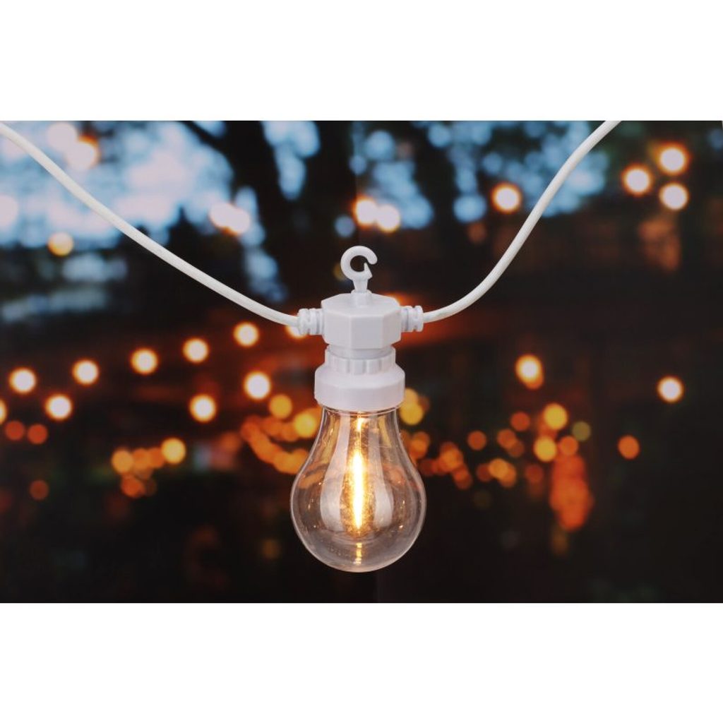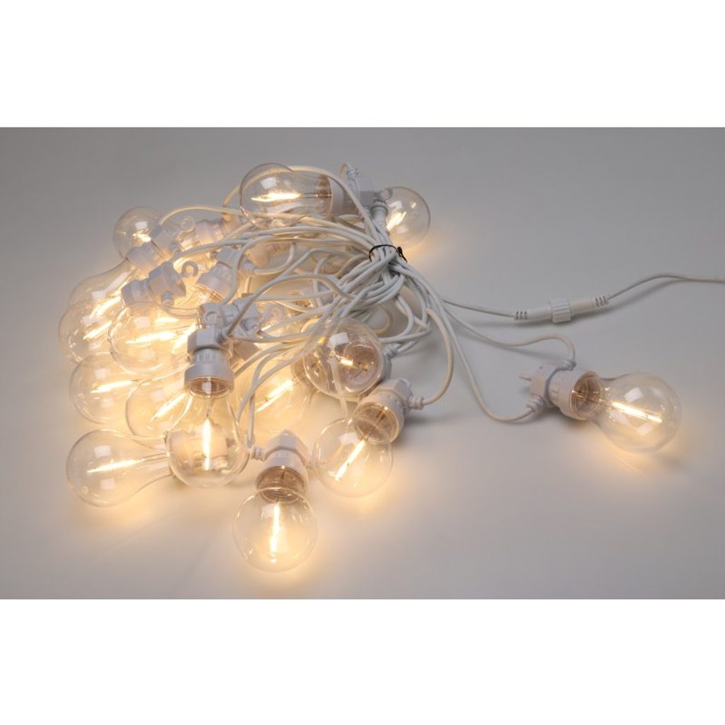 Dekorativní světelný řetěz s 20 koulemi A60 v teplé bílé barvě přináší útulnou atmosféru do interiéru i exteriéru. Každá koule je osazena jedním LED vláknem, které zajišťuje jemné a rovnoměrné osvětlení. Řetěz je připojitelný, vybavený časovačem a bezpečným transformátorem s krytím IP44. Díky bílému kabelu se skvěle hodí pro moderní i klasické dekorace.