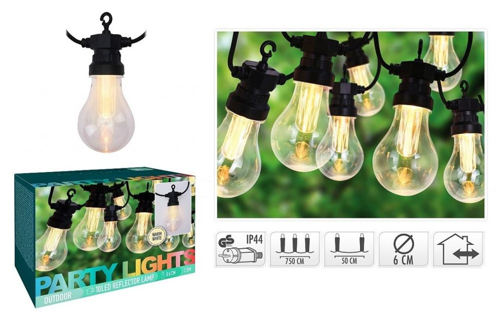PROGARDEN Světelný řetěz PARTY venkovní 10 žárovek KO-AXC100200