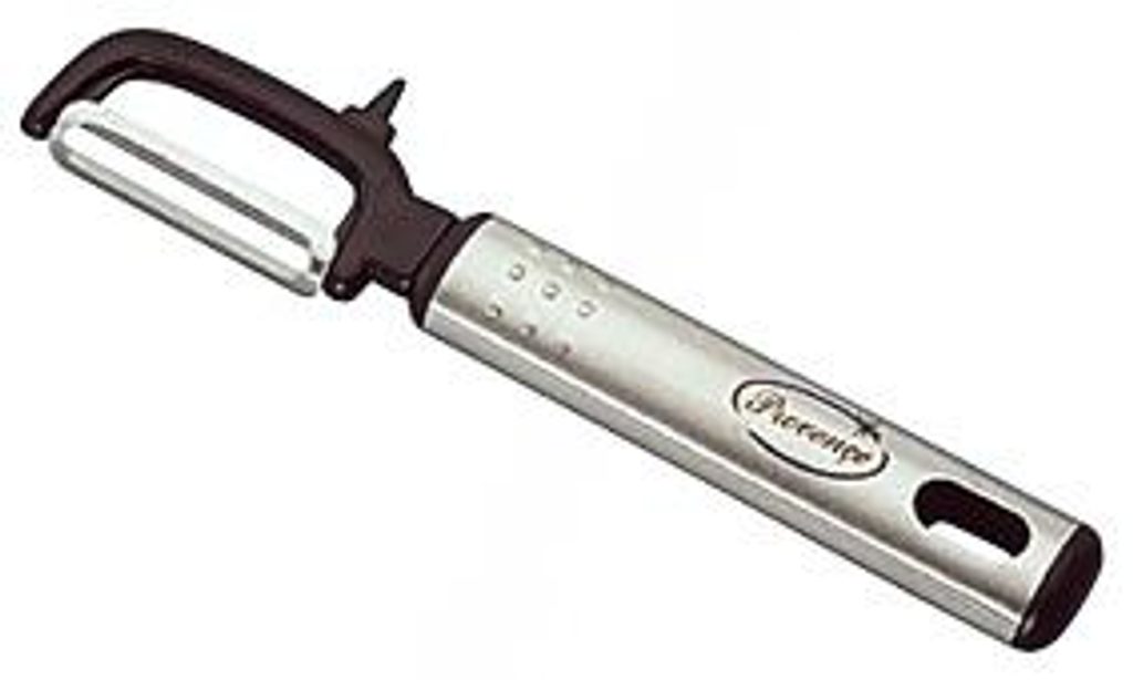 Rychloškrabka nerez 18 cm, vyrobena z matné nerez oceli 18/8 v kombinaci s černým plastem, otvor na rukojeťi umožňuje pověšení na závěsnou tyč. Pohyblivá čepel zajišťuje pohodlné čištění zeleniny.Vhodná do myčky na nádobí. Rozměry - 18 x 2,2 cm.