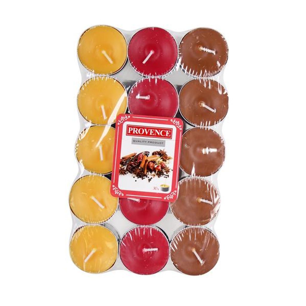 Jednoduchý zdroj světla, který navodí ve Vašem domově příjemnou atmosféru. Čajová svíčka je zároveň vhodná na vytváření vánočních, velikonočních, ale i jiných arengema. Nezapomeňte prosím dbát na bezpečnost a držte se na svíčce uvedených bezpečnostních piktogramů. Vůně sladké koření. Sada 30 ks.Doba hoření: cca 4 hodiny.