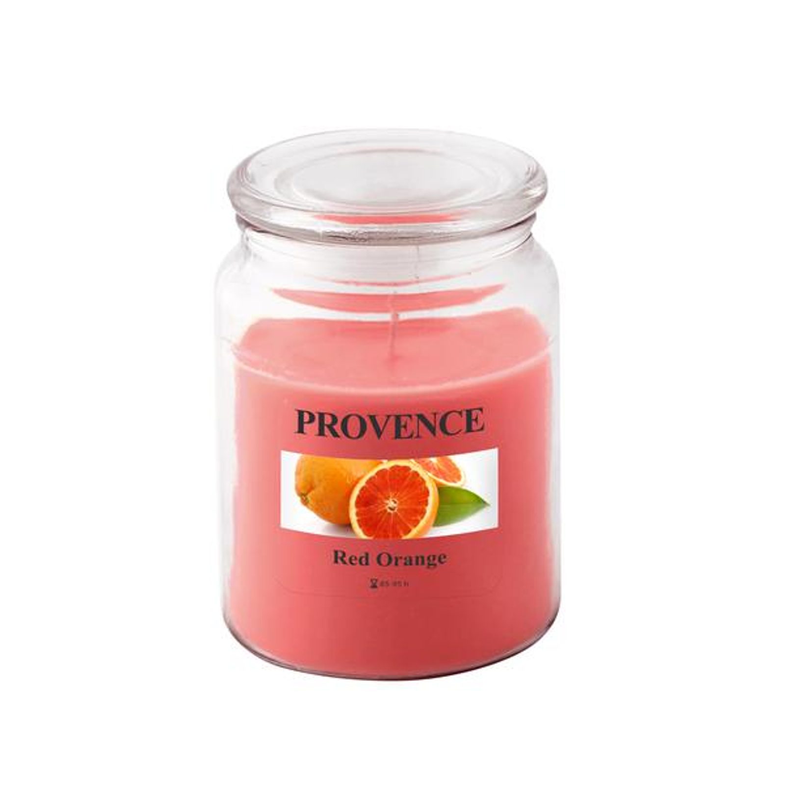 SVÍČKA VE SKLE S VÍČKEM 510G, ČERVENÝ POMERANČ