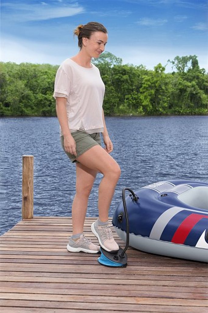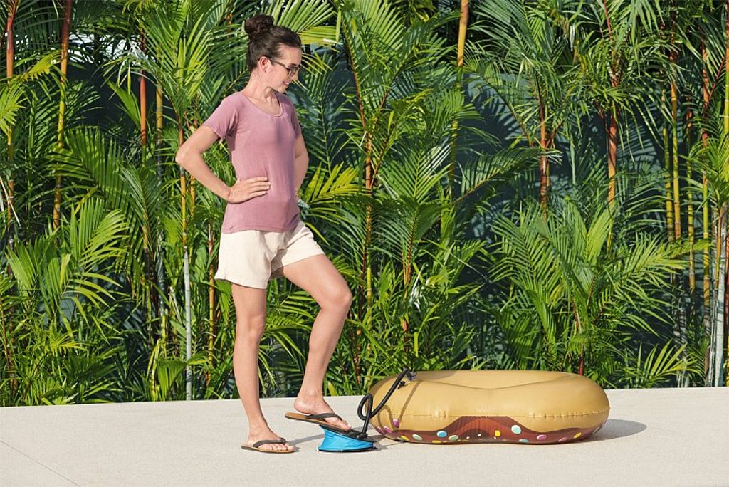 Nožní pumpa je vhodná díky snadnému použití k nafukování lehátek, matrací a jiných nafukovacích předmětů u vody nebo při kempování.