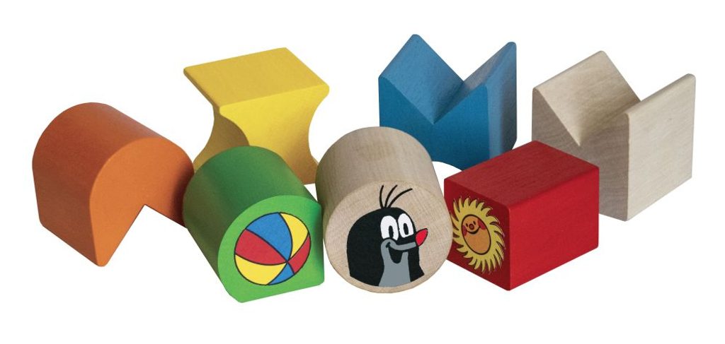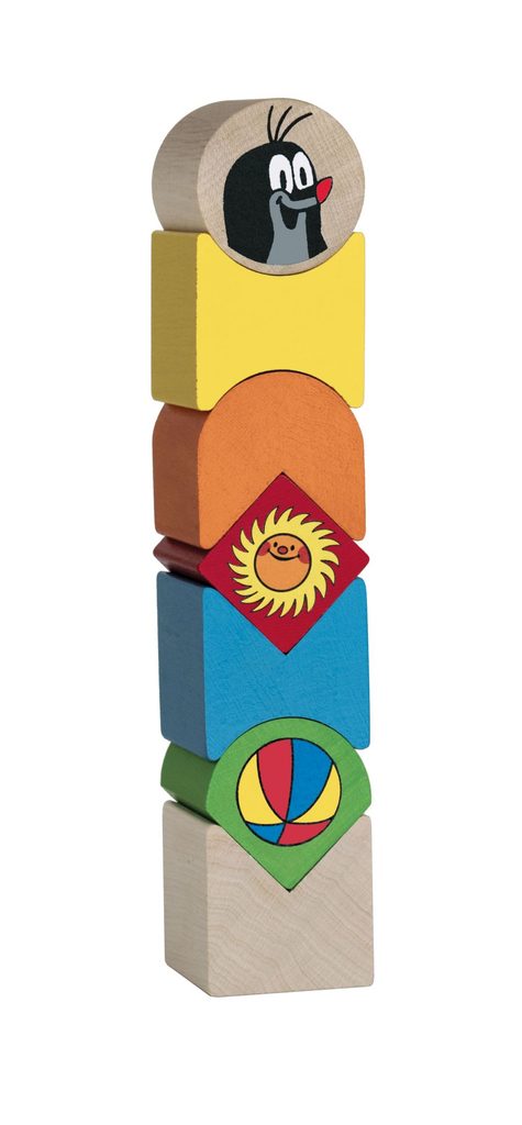 Dřevěné dílky různých tvarů a barev s potiskem vrstvíme na sebe. Rozvíjíme tak balanční představivost dítěte a jeho vlastní představivost.