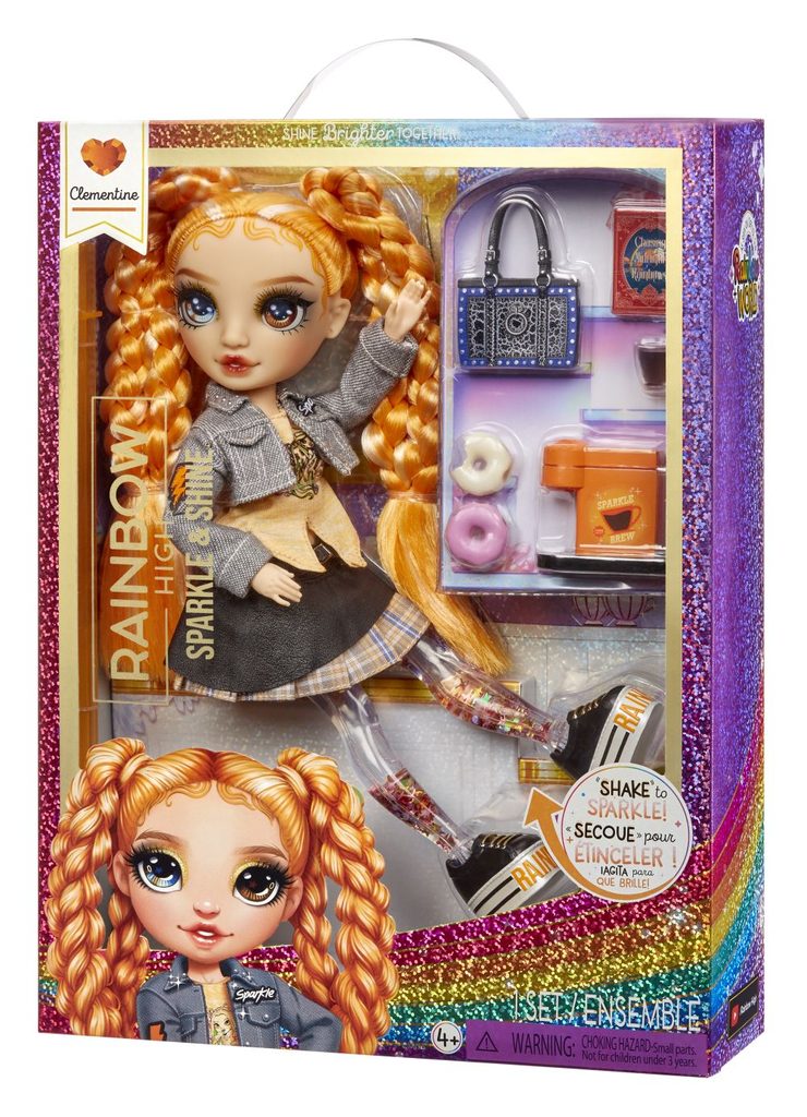 • hřeben, kabelka, sluneční brýle a další doplňky V Rainbow High již září všechny barvy duhy, a proto můžete mezi panenkami objevit úplně nový druh duhy. Takový, který se objevuje jen v noci. Sparkle&Shine jsou vzácné panenky krásné svým osobitým stylem. Jejich nohy jsou plné fascinujících barev a třpytek. Stačí s panenkou zatřást jako se sněhovou koulí a uvidíte, jak se nohy lesknou a třpytky se v nich pomalu usazují.