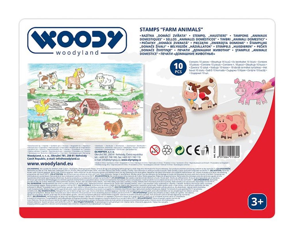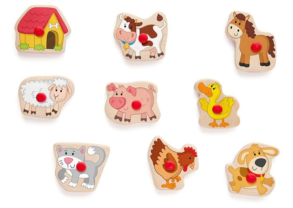 From one side it is a classical shape puzzle with handle, from the other side it is a stamp. It enables the children not only to colour the animals but also to make the whole compositions of landscapes and animals with them. Later they can draw and colour them. As a part of the product there is also a colour pad.