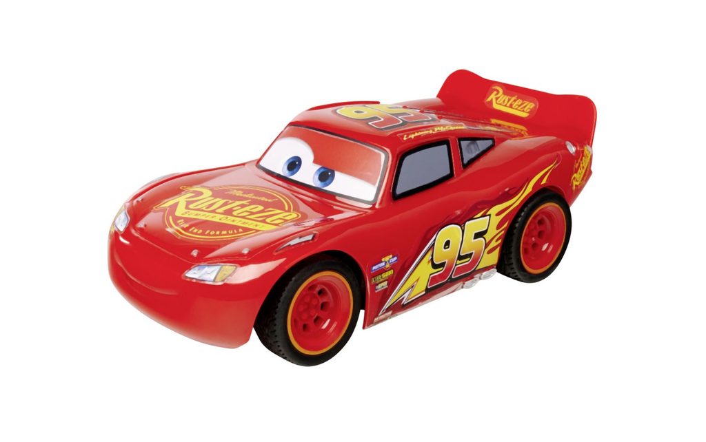Auto na dálkové ovládání Blesk McQueen v licenci Cars 3. 2 kanály (vpřed + vzad, vlevo + vpravo), frekvence 2,4 GHz, funkce turbo, součástí nabíjecí kabel USB, v měřítku 1: 24. Délka 17 cm.