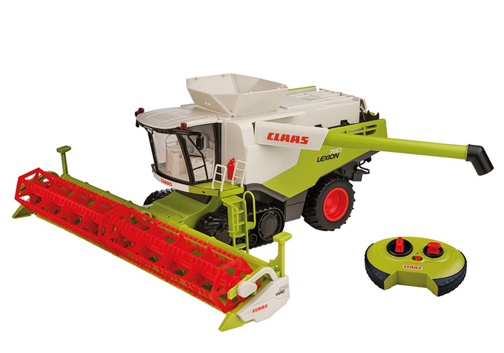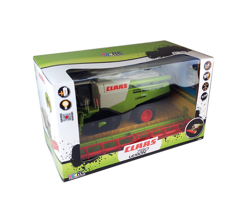 Kombajn CLAAS LEXION je věrnou kopií skutečného kombajnu. Má plnou funkci řízení a řazení. Funkční přední a zadní světla. Otočná kola, mechanická sekačka, výkyvná výstupní trubka a uzavíratelná nádrž na obilí. Kombajn je na dálkové ovládání s frekvencí 2,4 GHz.