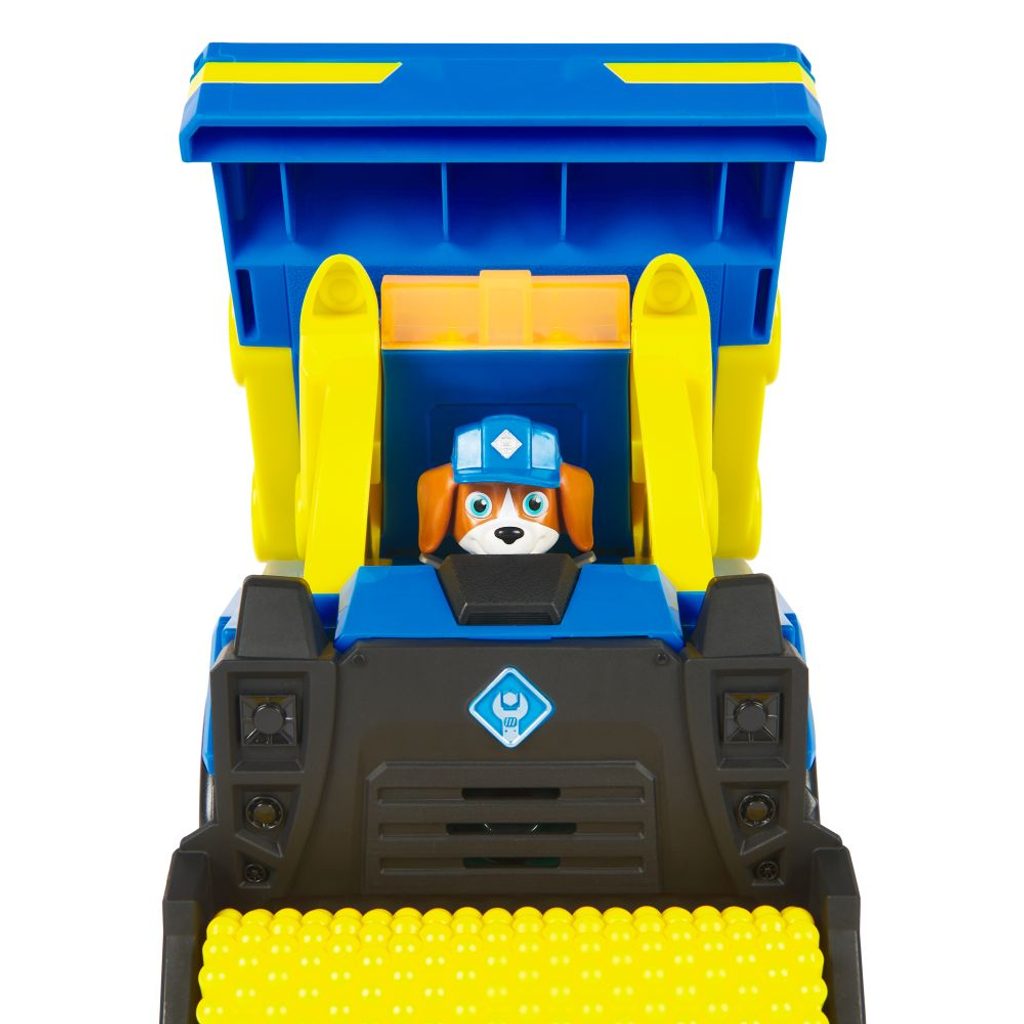 Rozšiřte svůj svět Tlapkové patroly o své oblíbené štěně Wheelera v jeho obřím Náklaďáku se sklápěčkou Bark Yard Deluxe ze seriálu Rubble a jeho parta! Jedná se o obrovskou hračku, která obsahuje opravdová funkční kola, kloubové nástroje, světla a zvukové efekty! Tato sada vozidel obsahuje 5 cm vysokou akční figurku Wheelera oblečeného v oficiální uniformě Rubbla a jeho party! Když přijde čas dát se do práce, posaďte Wheelera na sedadlo řidiče a zatlačte, čímž spustíte působivé světelné efekty a zvuky ze seriálu! Naložte náklaďák se sklápěčkou materiálem, poté naklopte korbu, abyste vysypali její obsah, a nakonec srovnejte hlínu pomocí válce, stejně jako to dělá Wheeler v seriálu! Ještě více zábavy ze světa Rubbla a jeho party vám zajistí stavební náklaďák, plyšové hračky, figurky, sady s kinetickým pískem Build-it nebo sada s Jeřábem Bark Yard spolu se sadou Rubblova dílna, které vám umožní vybudovat vlastní staveniště přímo u vás doma (prodávají se zvlášť)! Pokud hledáte hračku pro předškoláka ve věku 2–4 roky, hračky Rubble a jeho parta pro děti od 3 let jsou to pravé! Přeneste zábavu ze seriálu Rubble a jeho parta domů díky Wheelerovi a jeho Náklaďáku se sklápěčkou Bark Yard!