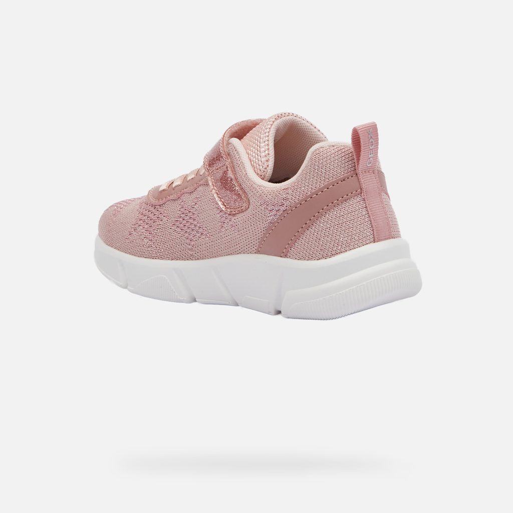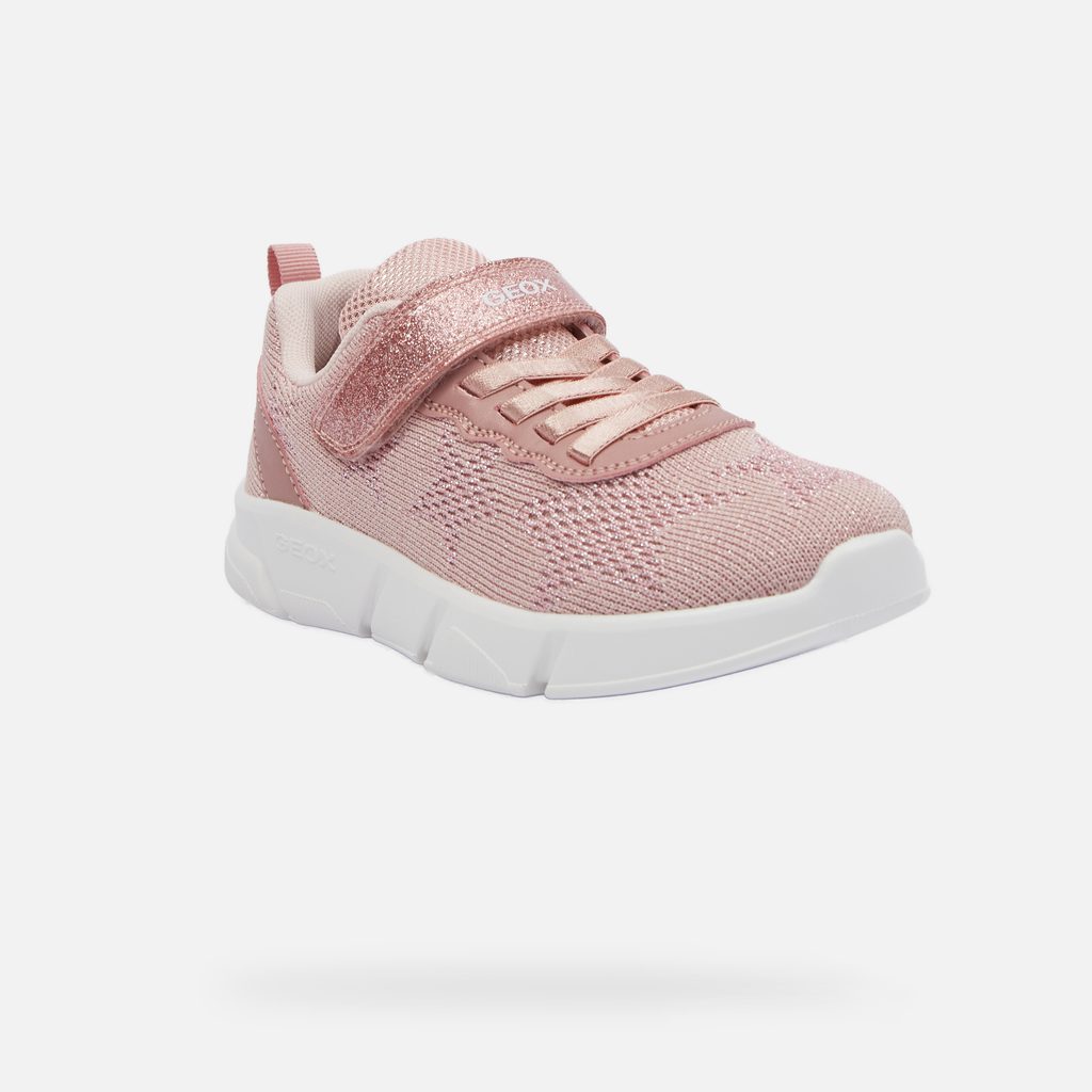 Díky nadčasovému designu a praktickému provedení budou tyto tenisky perfektním doplňkem k většině outfitů. Dopřejte své dcerce maximální pohodlí a styl v jednom. Stylové dívčí tenisky Geox Aril v růžovém provedení zaujmou na první pohled svým moderním designem. Pletený svršek kombinuje světlejší a tmavší růžové tóny, zatímco třpytivý pásek dodává botám jedinečný vzhled. Praktický systém zapínání kombinuje šněrování s páskem na suchý zip pro snadné obouvání.