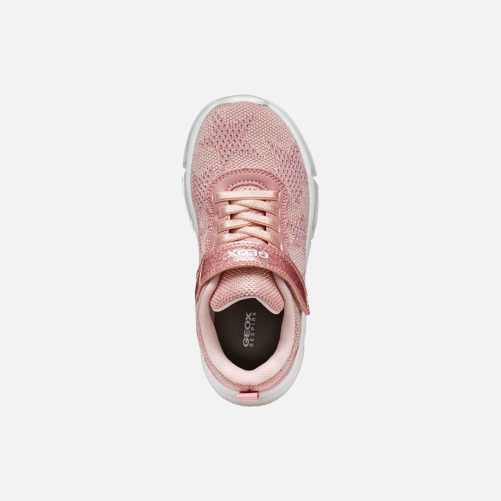 Stylové dívčí tenisky Geox Aril v růžovém provedení zaujmou na první pohled svým moderním designem. Pletený svršek kombinuje světlejší a tmavší růžové tóny, zatímco třpytivý pásek dodává botám jedinečný vzhled. Praktický systém zapínání kombinuje šněrování s páskem na suchý zip pro snadné obouvání.