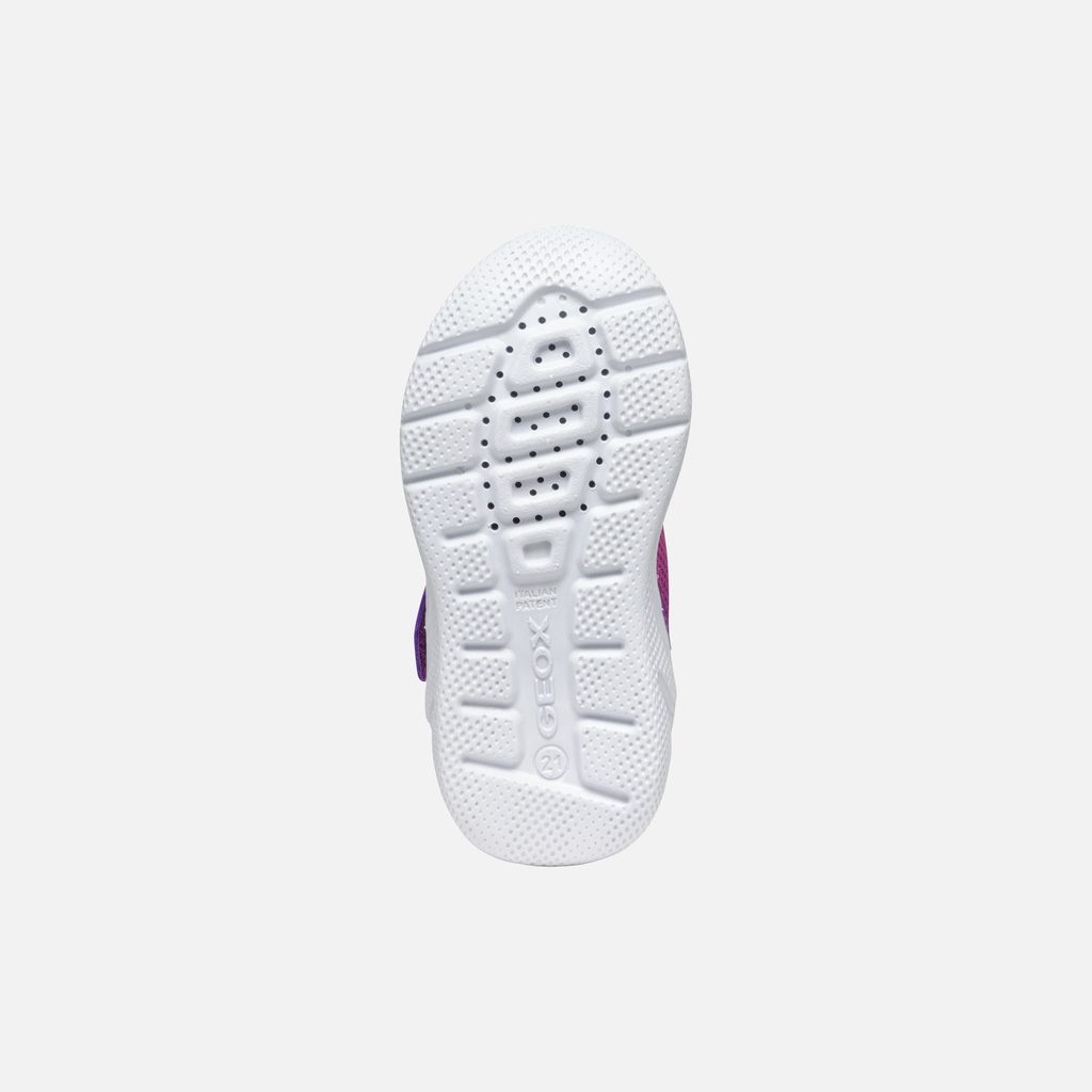 Tyto elegantní tenisky v jemných odstínech růžové a fialové jsou stvořené pro aktivní dívky, které milují pohyb a zábavu. Ať už běhá po hřišti, tančí s kamarádkami nebo prozkoumává svět kolem sebe, její nožky zůstanou v naprostém pohodlí díky pečlivě zpracované konstrukci značky Geox.