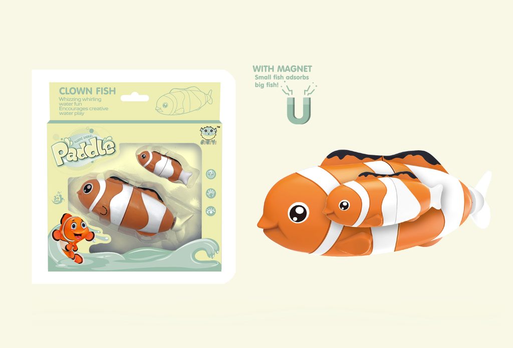 Sada maninky a miminka. Větší rybička je na baterie a plave sama. Menší na baterie není.