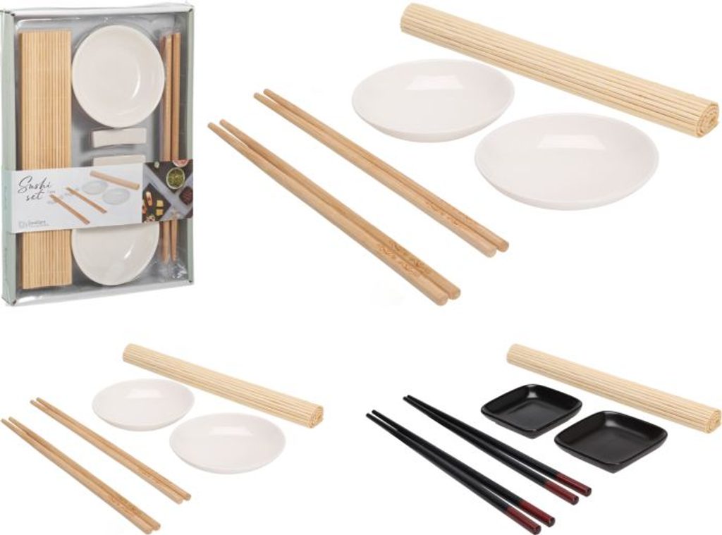 - sada 7dílná na SUSHI, podl.25x21cm, 2xtalíř porc., 2x2hůlky, 2držáky